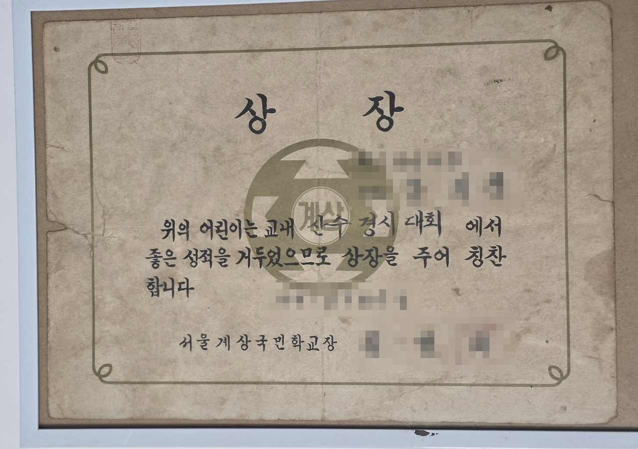 정리하자면 산수 경시대회 만점 자라기엔 공간지각 능력과 효율성 계산이 심각하게 떨어졌다. 역시 내 실력이 아니었던 게 분명하다. 마침 아버지도 퇴근 후 병실에 계셨다. 비에 홀딱 젖어 숨을 헐떡이는 작은 꼬마가, 마찬가지로 빗물에 불어 터진 눅눅한 상장을 자랑스럽게 내밀며 소리쳤다. (그 뒤 아버지에 대한 기억은 없다.)