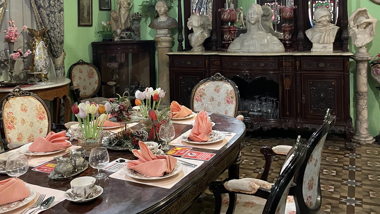 건물 안으로 들어가니 중국식 안뜰, 유럽식 스테인드글라스, 말레이시아식 재료 등이 섞여 독특한 분위기를 뽐냈다. 내부에는 식당, 침실, 응접실 등 각종 생활공간부터 가구, 의상, 장신구, 공예품 외 크고 작은 일상 용품까지 약 1,000여 점의 유물이 전시돼 있다 한다. 다채롭게 섞인 유물들은 언뜻 봐도 혼재된 문화가 강하게 느껴졌다.