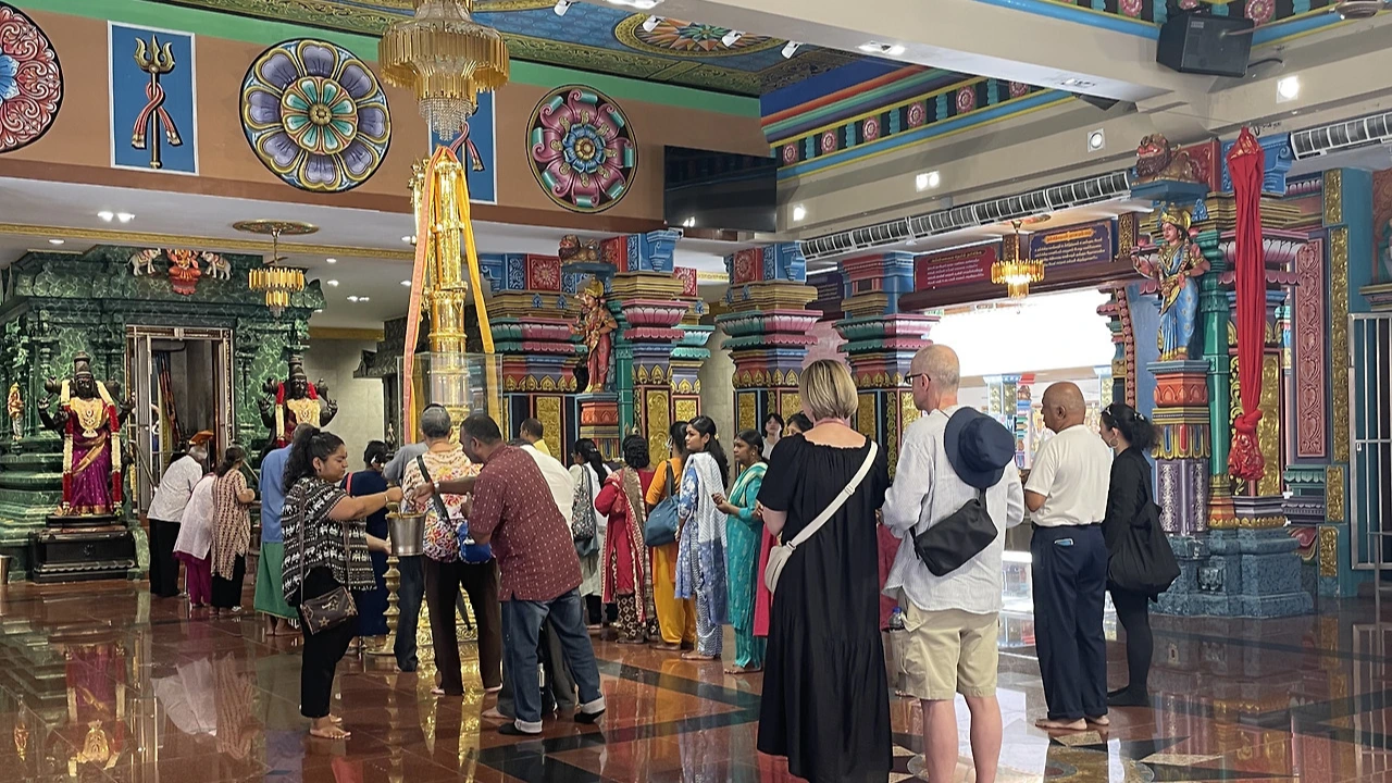 우리는 택시에서 내려 돌아서자마자 이미 외관에 압도당했다. 힌두교 신상들로 그야말로 꽉 찬, 높은 입구 정면 탑. 너무 화려해서 한참을 바깥에 머물며 보고 또 봤다. 이렇게 까지 정성을 바치는 종교라니. 화려한 건 종교의 기본 정신에 위배되는 게 아닌가 싶다가도 이건 힘의 과시가 아니라 정성이구나,라는 생각에 이르렀다.