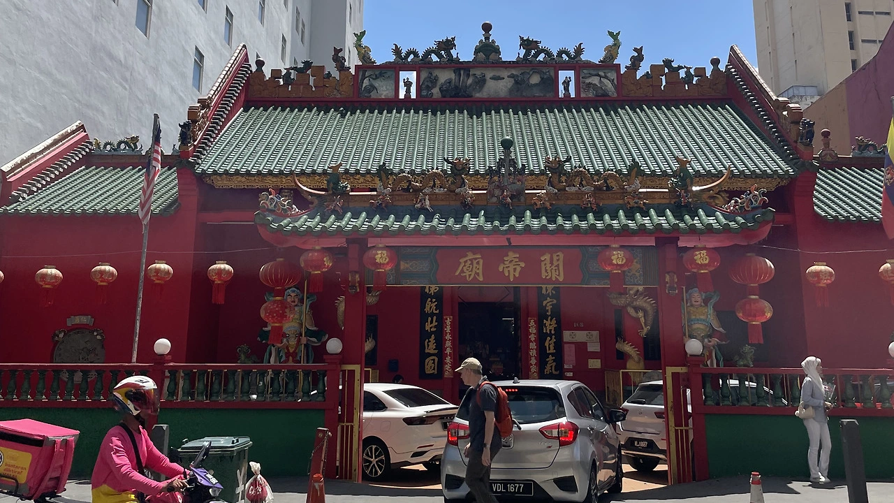 그리고, 도보로 얼마 떨어지지 않은 거리에 관우를 신으로 모시는 중국 종교 신전이 보였다. 압도적 외관을 자랑하는 힌두교 사원보다는 한결 차분한 모습이었지만 지붕 위에 펼쳐지는 대칭 조각상들과 붉은색으로만 가득 칠해진 입구 벽면은 꽤 강한 존재감을 드러냈다.