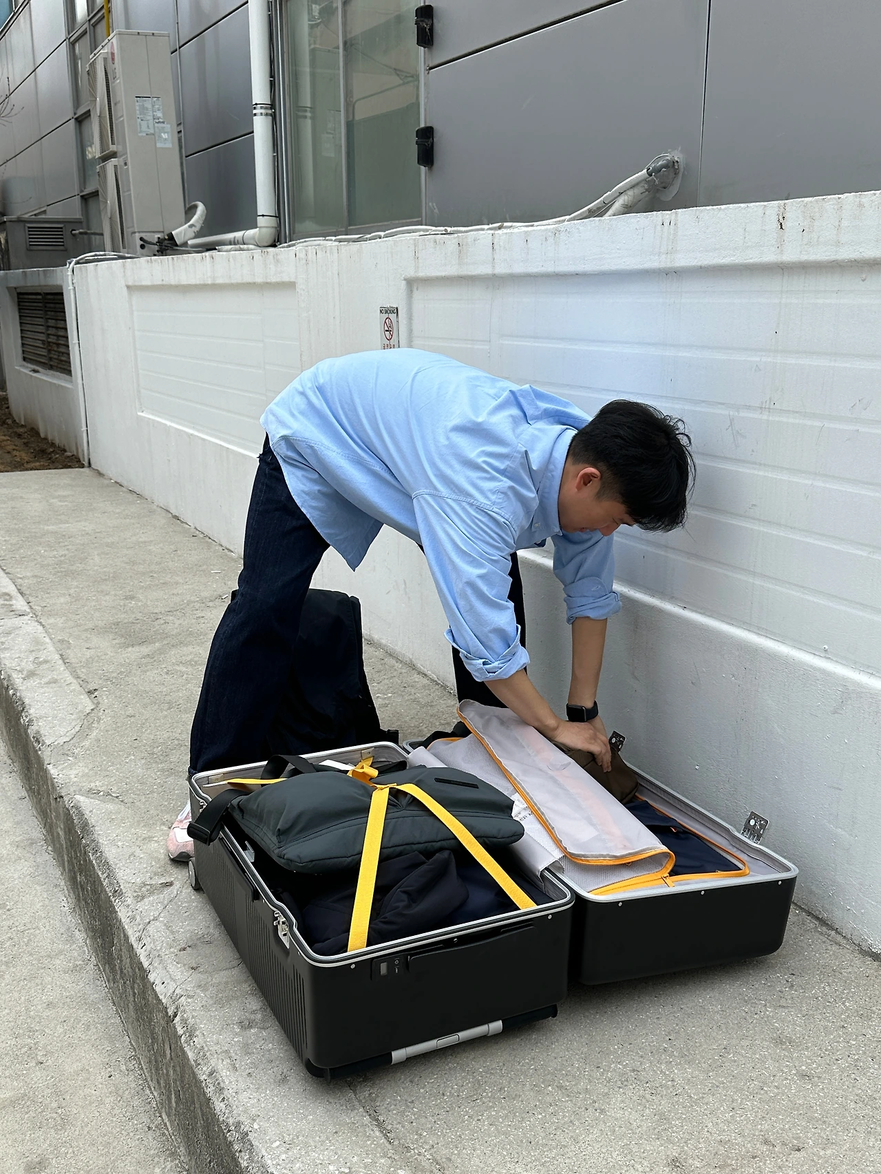 트렁크를 찍는 성수를 찍는 저를 찍는 신영.