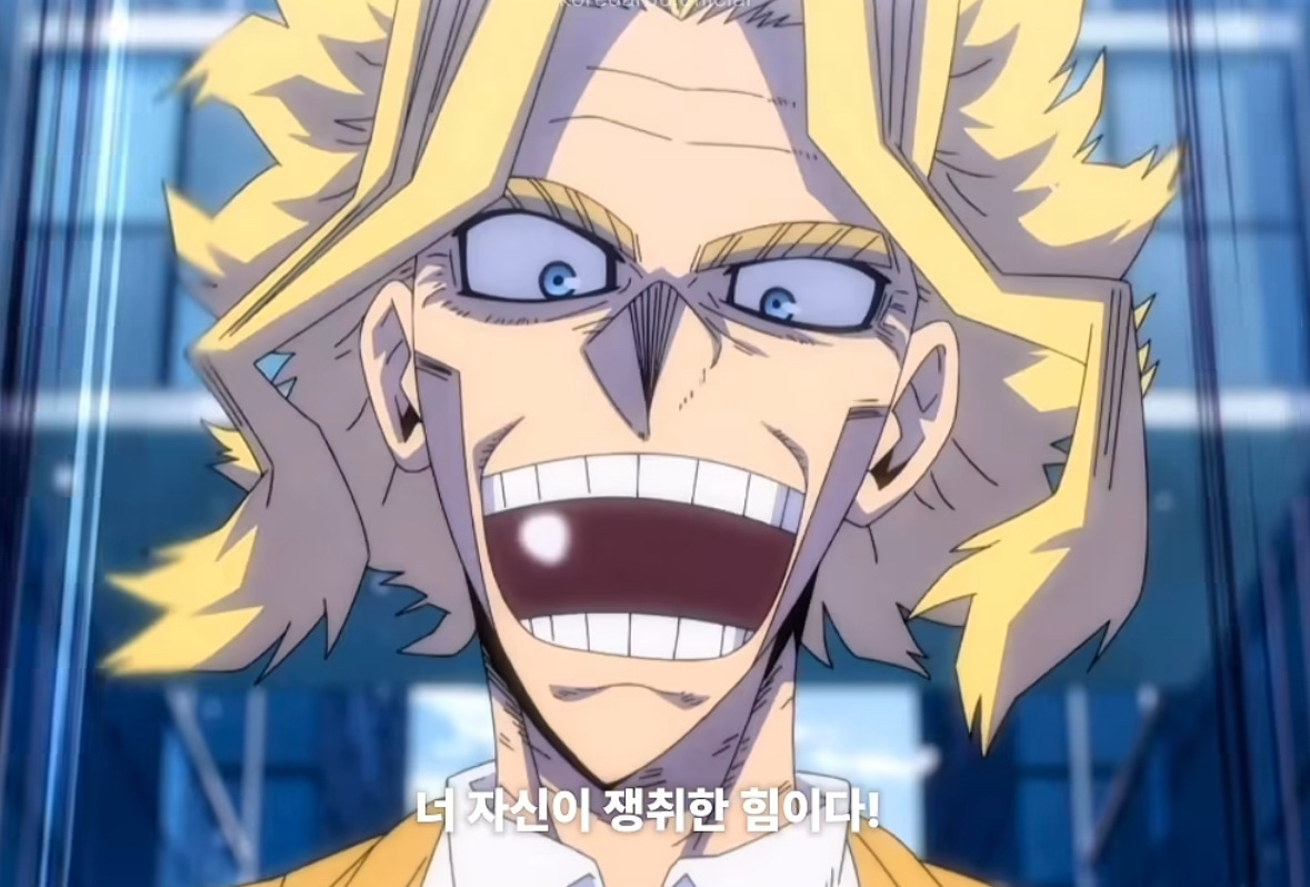 히어로라는 꿈을 심어준 올마이트를 만나게 되죠.