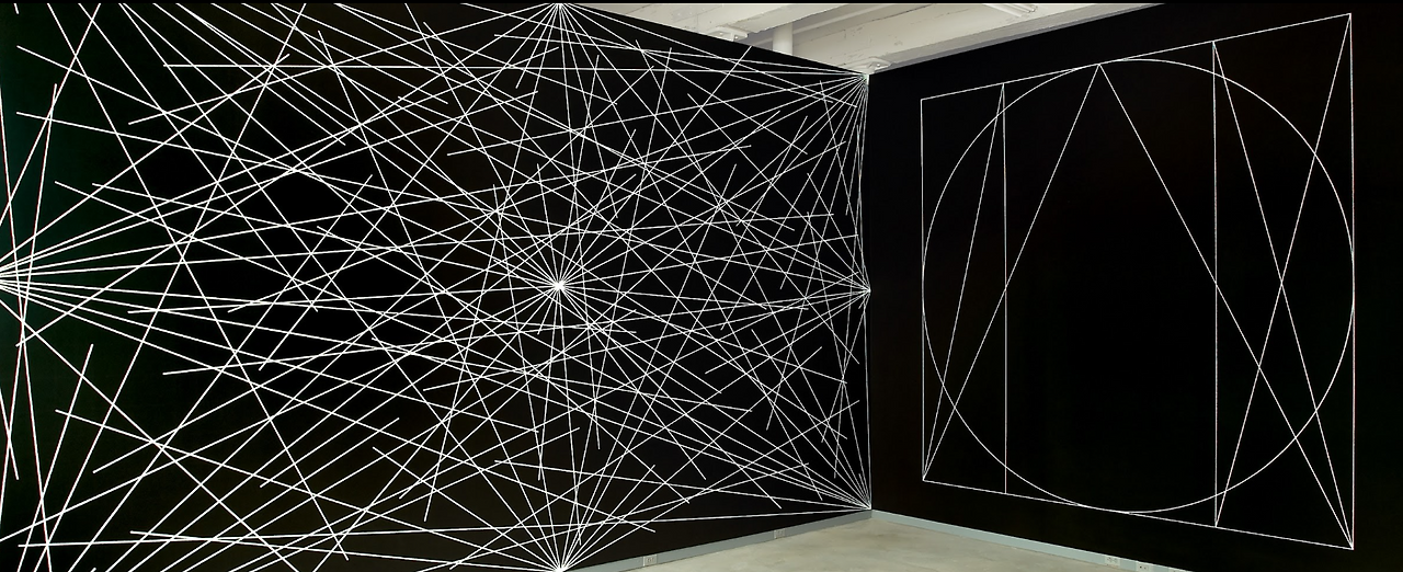 Carl Andre, 1988 전시 전경, Palacio de Cristal, Madrid또 한 명의 소개하고픈 작가는 미니멀리즘 작업을 하다 개념미술로 옮겨간 솔 르윗(Sol LeWitte, 1928-2007)이다. 1967년 “아이디어가 미술을 만드는 기계”라고 선언했던 그는 바닥 타일인지 작품인지 모를 사물의 물성조차 배제하고자 했다. 이후 갤러리 벽에 무수한 직선을 남긴 <월 드로잉 Wall Drawing> 작업에 천착했다. 물론 작가인 그는 설명서에 사인을 할 뿐, 직접 선 한 줄을 긋지 않았다. 수백수천 개의 선은 제도사들이 그린다. 그럼에도 불구하고 르윗의 작품이다.