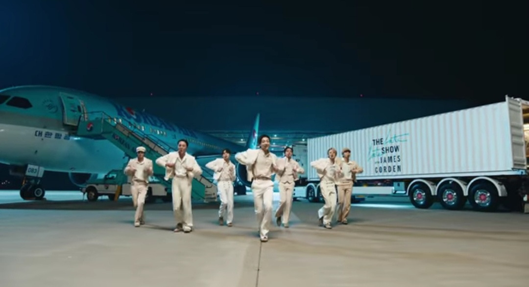 한편, 12월 초에 공개된 'Life Goes On' & ‘dynamite’@ The late Late Show with James Corden 영상 속에서도 의외로 눈길을 끈 존재가 있으니, 후반부에 등장하는 대한항공 B787-9 드림라이너 여객기이다.