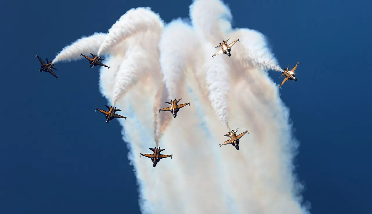 이중에서도 아슬아슬하고 화려한 최고난이도 곡예비행을 보여주기로 유명한 미국 공군 썬더버드과 해군 블루 앤젤스이며, 이에 필적하는 실력을 인정받고 있는 팀이 우리 공군 블랙이글스이다.