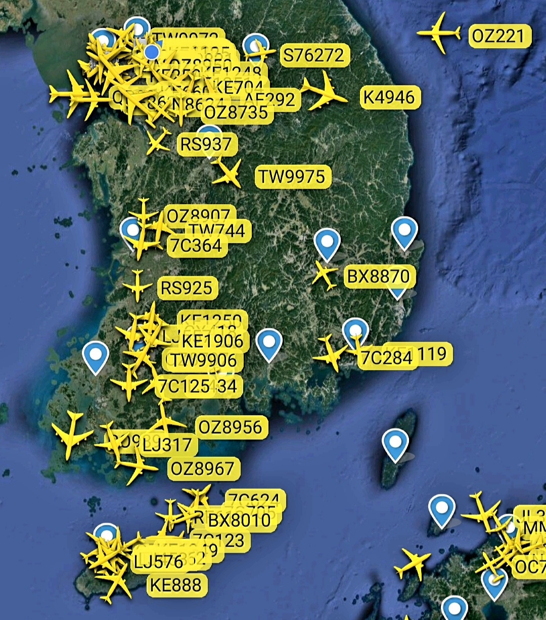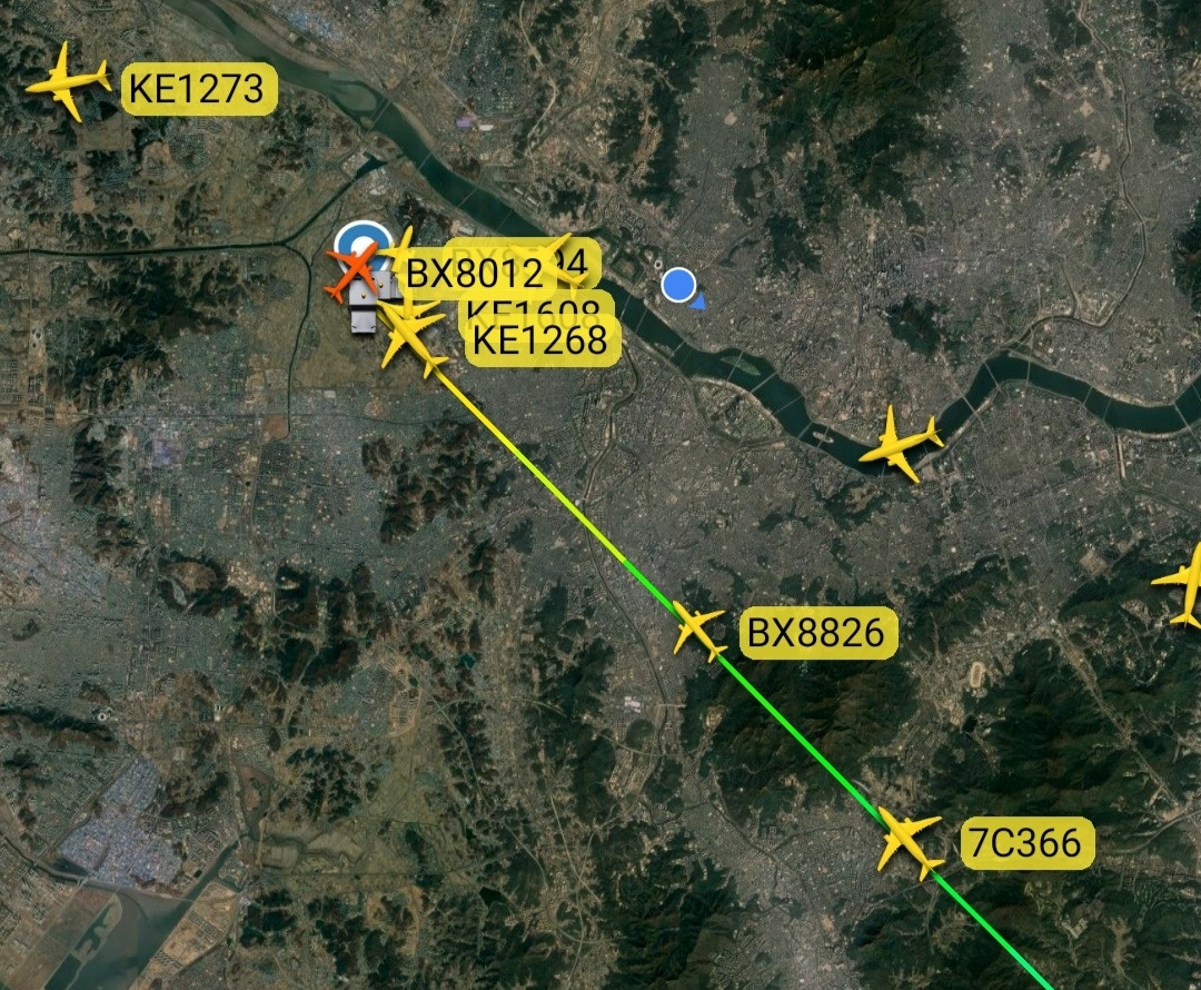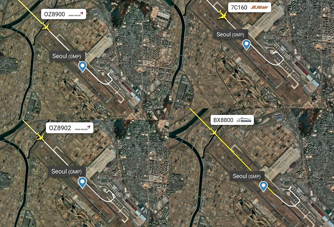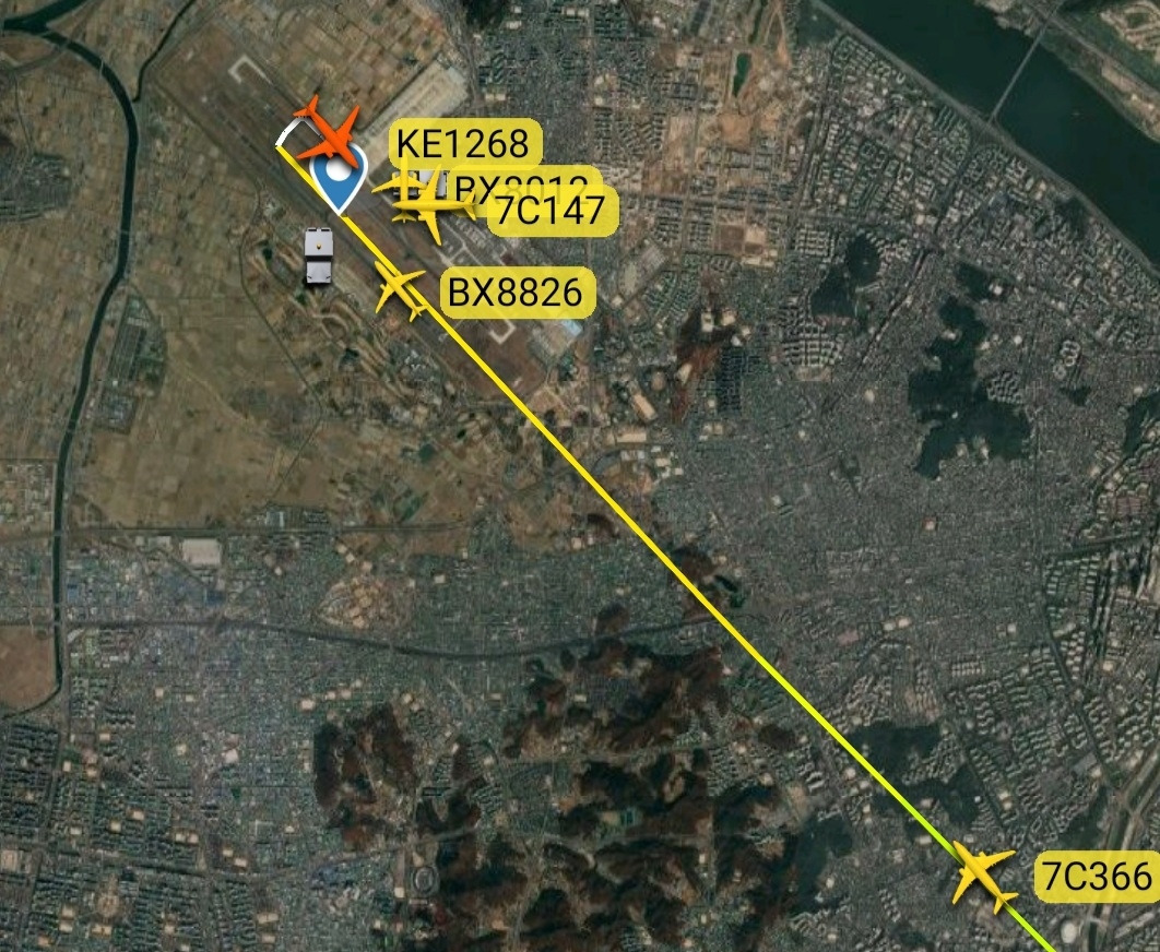 당일 그 시간대에 김포공항에 착륙한 항공편은 제주공항 출발 아시아나항공 OZ8900편, 제주항공 7C160편, 아시아나항공 OZ8902편과 김해공항 출발 제주항공 7C211편, 에어부산 BX8800편까지 총 5편이다.