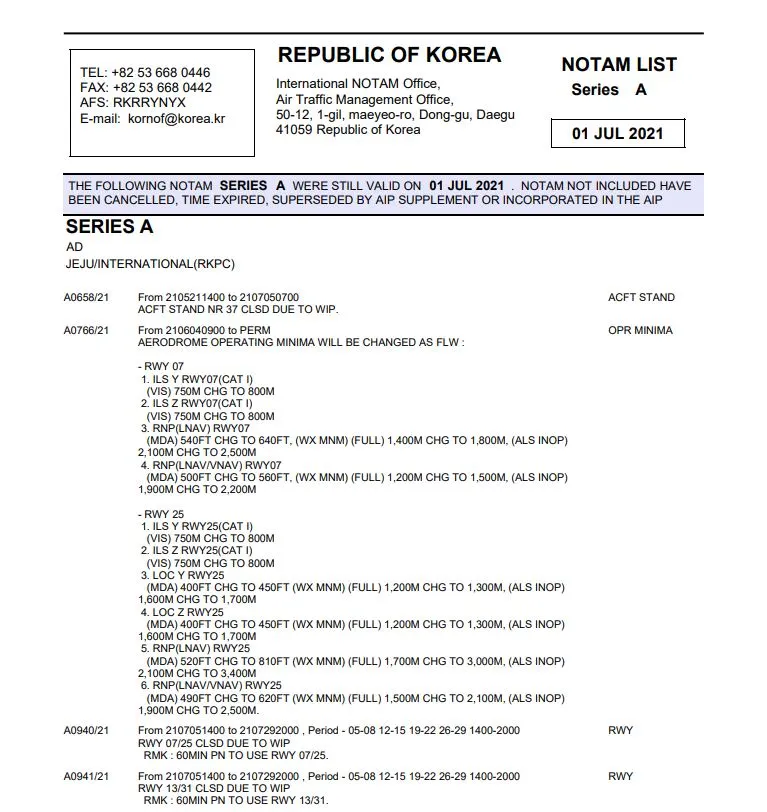 NOTAM(Notice to Airmen)은 항공보안을 위한 시설, 업무 또는 방식 등의 설치와 변경, 위험의 존재 등에 대해서 운항승무원을 포함한 운항 관계자에게 국가에서 제공하는 고시로 기상정보와 함께 항공기 운항에 없어서는 안될 중요한 정보이다.