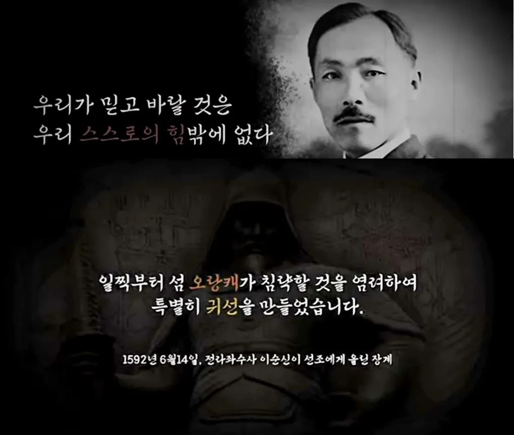 우리가 믿고 바랄 것은 우리 스스로의 힘밖에 없다는 도산 안창호 선생의 말씀과 400여 년 전인 1592년 전라좌수사 이순신장군께서 섬나라 오랑캐가 침략할 것을 염려하여 만든 거북선의 존재는 21세기를 살아가는 후손으로 국가의 중요성을 다시금 되새겨 주는 역사이다.