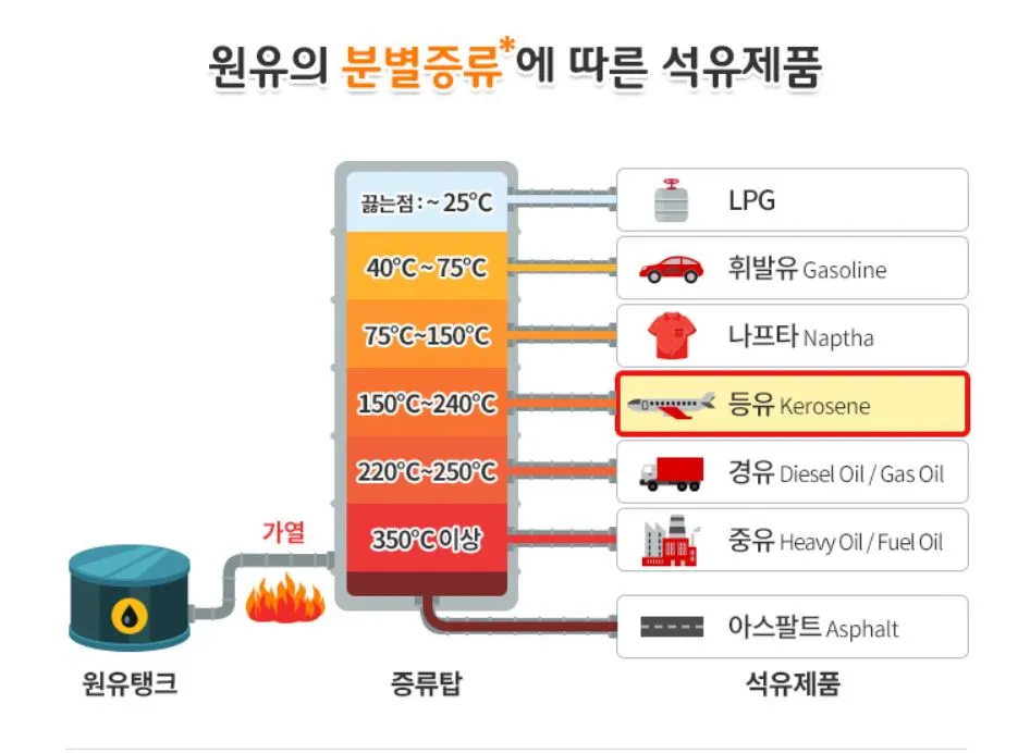 항공기용 연료는 크게 3가지 종류로 제트엔진용 연료인 JET A-1은 등유를 베이스로 제조된다. 저온과 저압 상태에서 압력 흐름을 제한하는 증기폐쇄 현상이 없고 쉽게 얼지 않으며, 연소량과 발열량이 좋다.