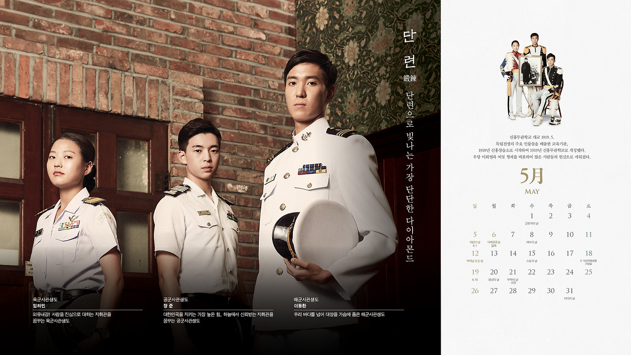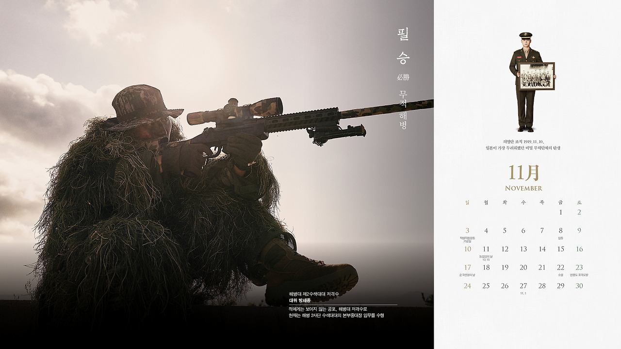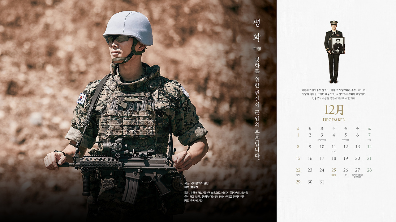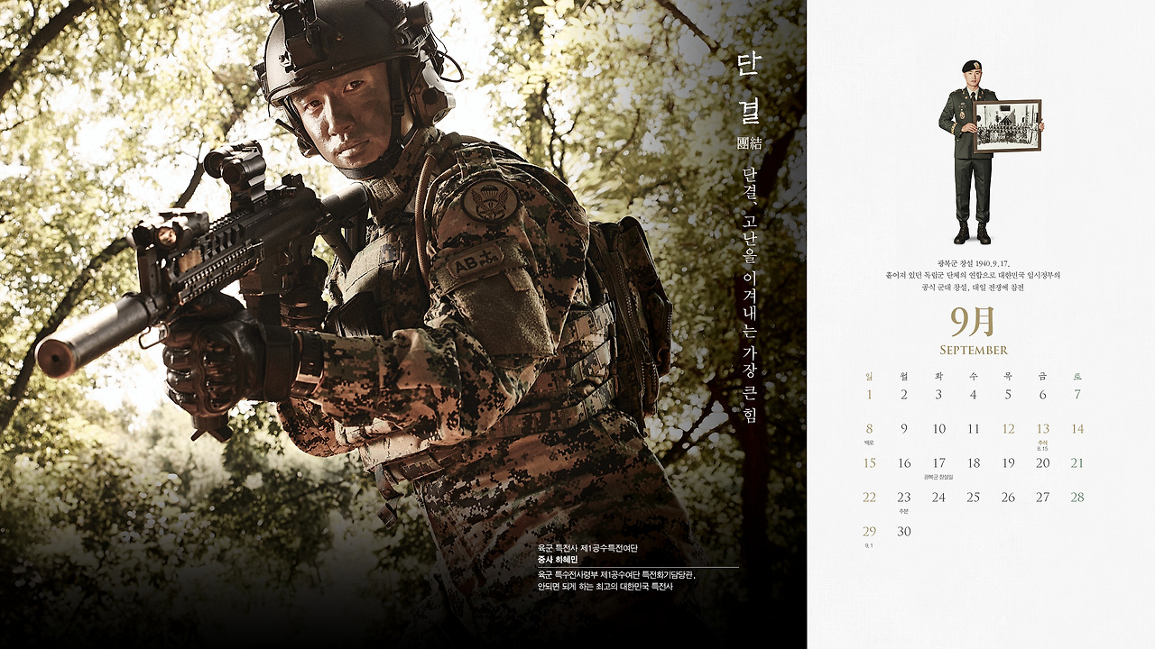 대한민국 임시정부 수립 100주년을 기념하며, 특별하게 제작된 2019년 대한민국 국방부 달력 '국군, 닮음을 담다'에 담긴 사진들은 국군의 뿌리를 찾아, 독립전쟁의 영웅을 닮은 우리 국군장병의 모습을 담고 있다.