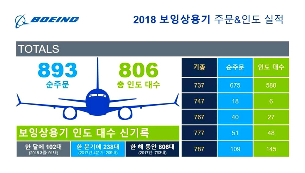 보잉의 2018년 상용 항공기 주문 및 인도 실적에 따르면 지난 해에 전 세계 민간 항공사로 인도된 B737 시리즈 580대, 이중에 절반이 B737 맥스로 1월까지 인도된 기체는 350대, 월 평균 50대 넘게 생산되는 기체의 지금까지 누적 주문량은 5,000대가 넘는다.