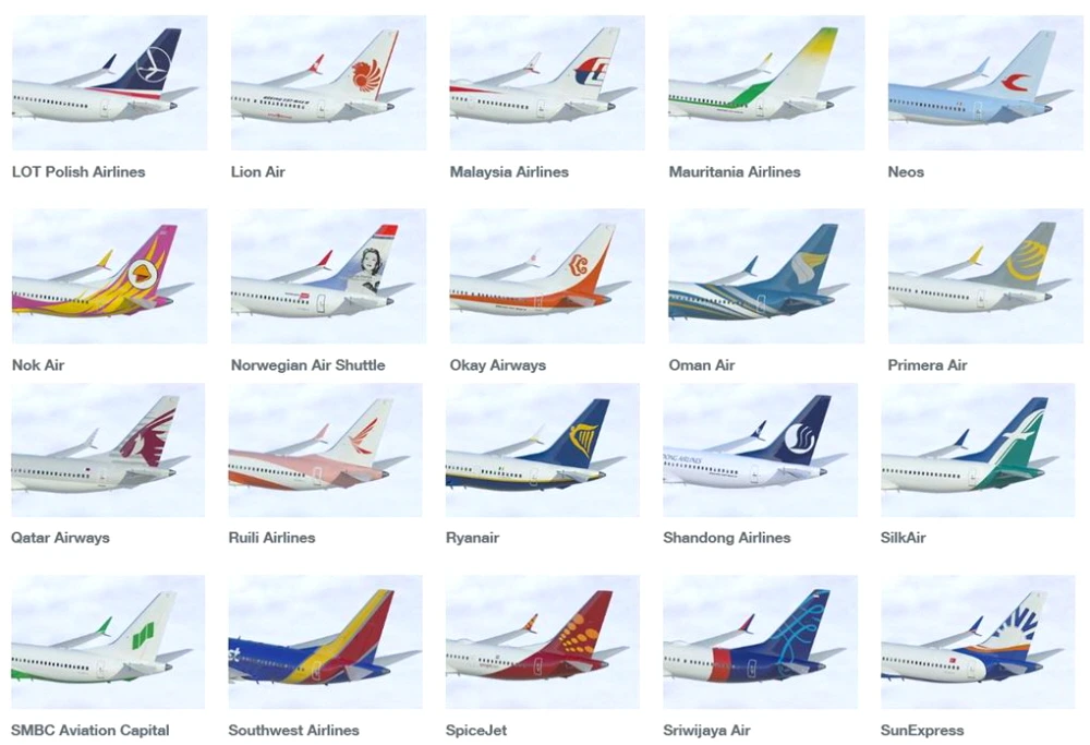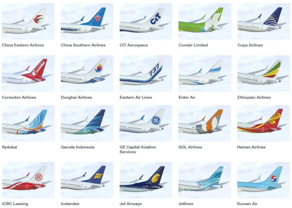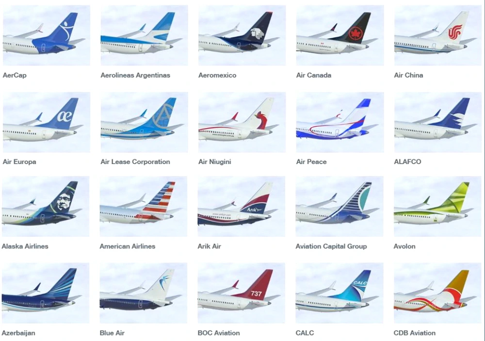한편, 아래는 B737 맥스를 주문한 전 세계 민간 항공사와 도입하여 운항 중인 각 항공사들의 기체 이미지이다.