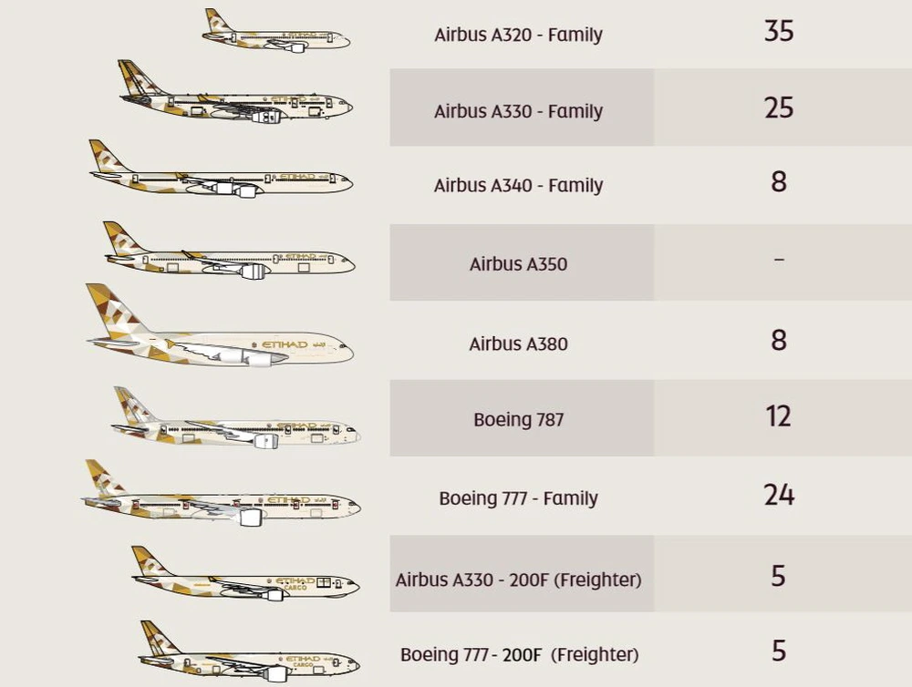 연한 금빛을 가진 항공기 동체 칼라가 눈에 띄는 에티하드항공은 아부다비국제공항을 허브로 62개국 110개 도시에 취항 중이며, 인천~아부다비 노선도 매일 취항 중이다.
