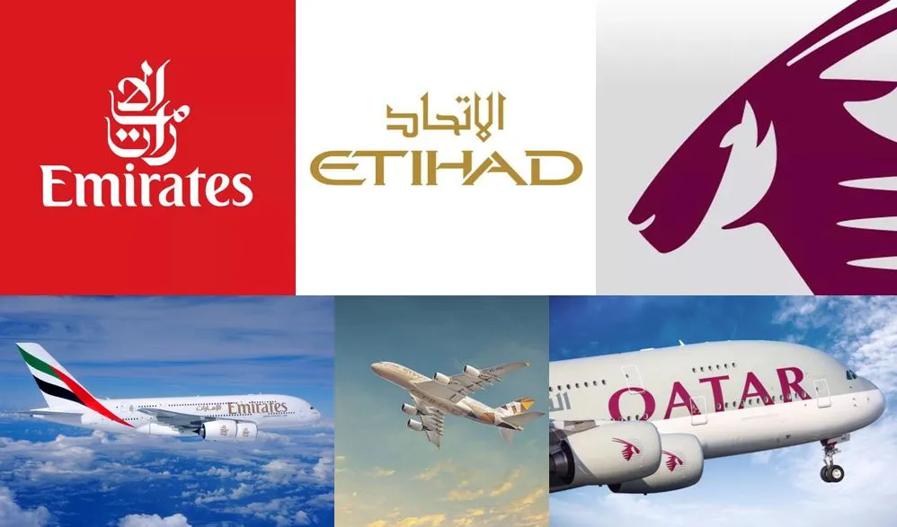 한편, 중동의 메이저 항공사는 아랍에미레이트연합의 두바이가 허브인 에미레이트항공에 이어 아부다비가 허브인 에티하드항공와 카타르 도하가 허브인 카타르항공이 있다.
