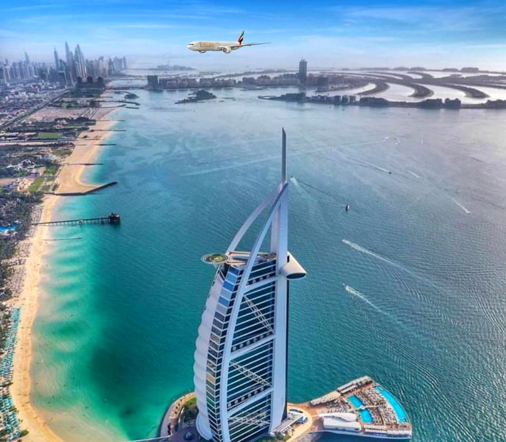 아리바아의 목선인 ‘다우’를 형상화 한 초특급 호텔 ‘버즈 알 아랍’과 높이 828m의 세계 최고층 마천루 ‘부르즈 할리파’가 상징인 중동에서 가장 매력적인 도시 두바이를 허브로 하는 에미레이트항공은 1985년 2대의 항공기로 시작해, 2019년 현재는 A380과 B777 등 268대의 대형여객기와 화물기로 우리나라를 포함하여 85개국 158개 도시에 취항하고 있다.