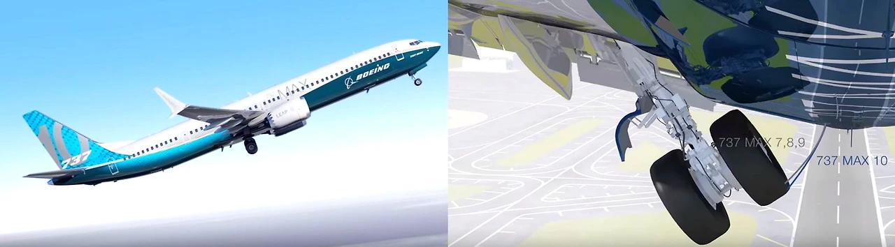 장기적으로 전 세계 민간항공시장에서 각국의 저비용 항공사들이 구형 B737과 A320 대체용으로 주문할 것으로 기대하고 있는 MAX 10의 가장 큰 특징은 길어진 동체와 이에 따른 MAX 7, 8, 9와 다른 새롭게 설계된 랜딩 기어를 장착했다.