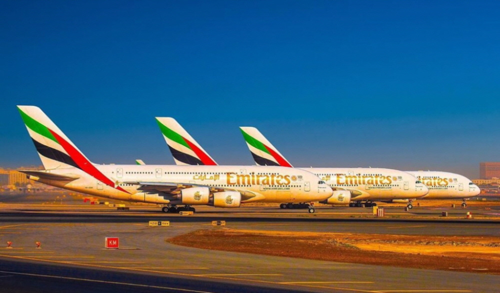 200대가 넘는 B777과 A380으로 연간 6,000만 명에 이르는 승객을 운송하는 중동의 메이저항공사인 에미레이트항공도 3월25일부터 대한민국, 영국, 스위스, 홍콩, 태국, 말레이시아, 필리핀, 일본, 싱가포르, 호주, 남아프리카공화국, 미국, 캐나다를 제외한 나머지 노선은 운항 중단에 들어갔으며, 직원들은 유급 또는 무급 휴가와 3개월 간 기본급 25∼50%를 삭감하기로 했다.