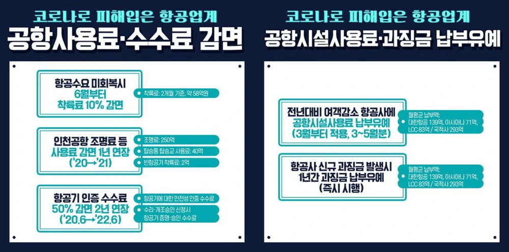이에 항공사들은 살아남기 위해 운항, 객실, 정비, 지원 등, 전 임직원들에 대해 무급 및 유급 휴가와 임금 삭감 등의 조치를 내렸으며, 정부 부처와 유관 기관들도 심각성을 깨닫고 실제 체감이 되는 방향으로 방안을 마련 중이나 역부족인 상황이다.