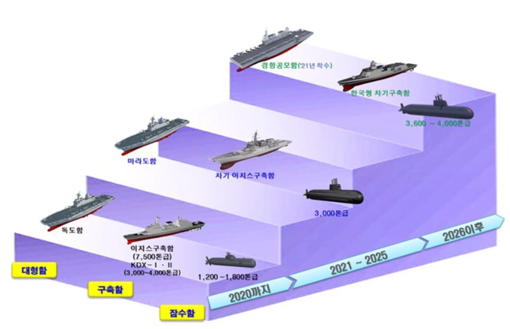 현대 전장의 승패를 결정짓는 해상과 공중 전력 증강을 위해 3만 톤 이상의 다목적 경항공모함도 10년 안에 건조하며, 2026년부터 실전 배치되는 KF-X와 더불어 공중 전력의 주력 전투기인 F-15K도 최근 국내 기술로 개발된 AESA 레이더, 국산 정밀유도무기체계를 개발 탑재하여, 주변국 공중 전력에 대응할 예정이다.