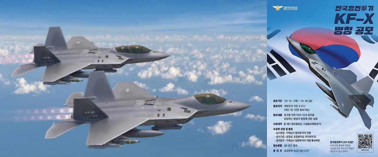 지난 9월부터 동체조립에 들어가 내년 상반기 시제기 출고, 2026년 실전 배치 예정으로 기체, 항공전자시스템, 무장 체계 등을 개발 중인 차세대 한국형 전투기 KF-X의 명칭이 국민 누구나 참여가 가능한 공모전을 통해 정해진다.
