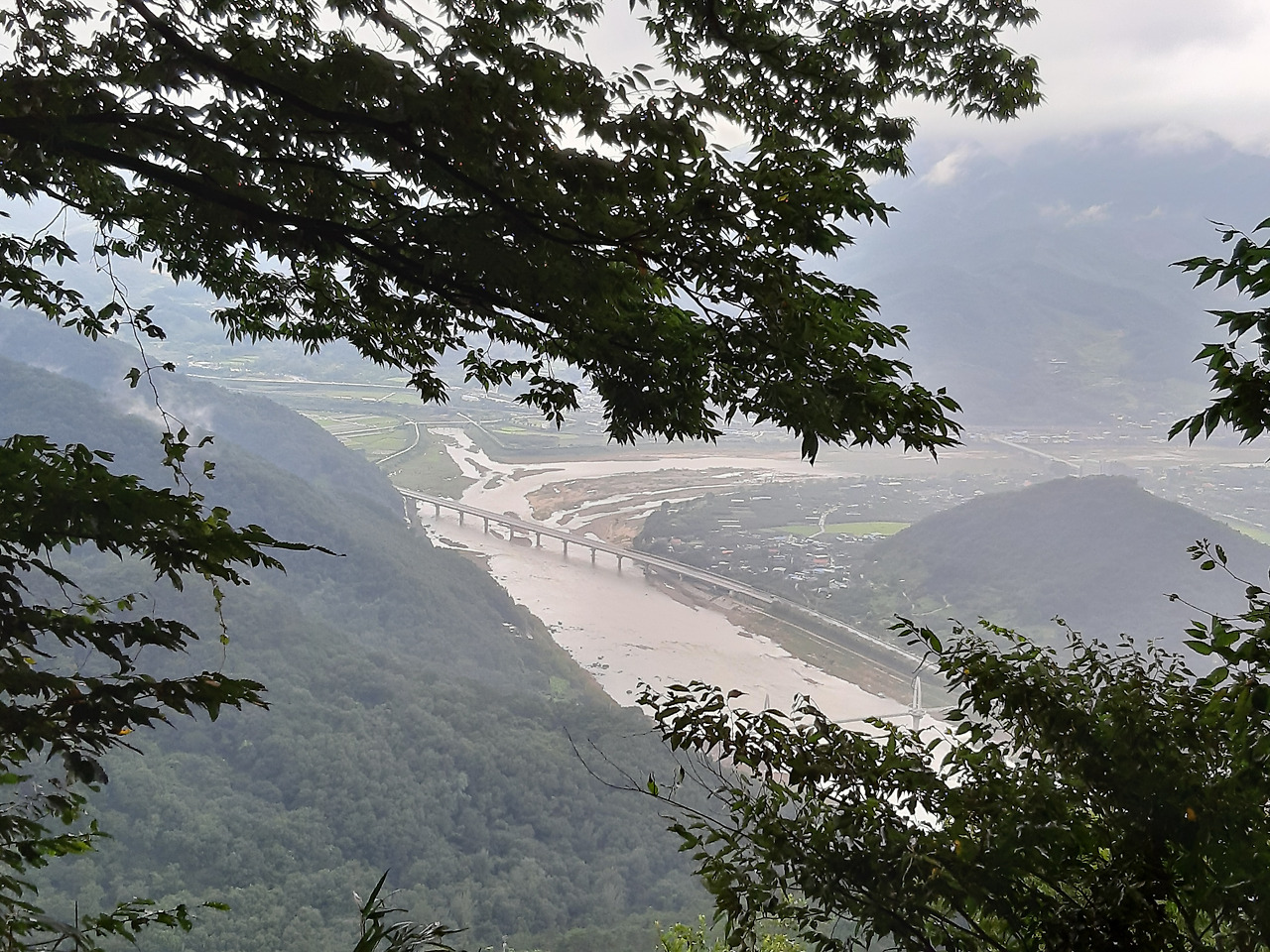사성암에 올라서면 아래로 겹겹이 둘러싸인 산들이 내려다보이고 섬진강의 유려한 풍경도 볼 수 있습니다.