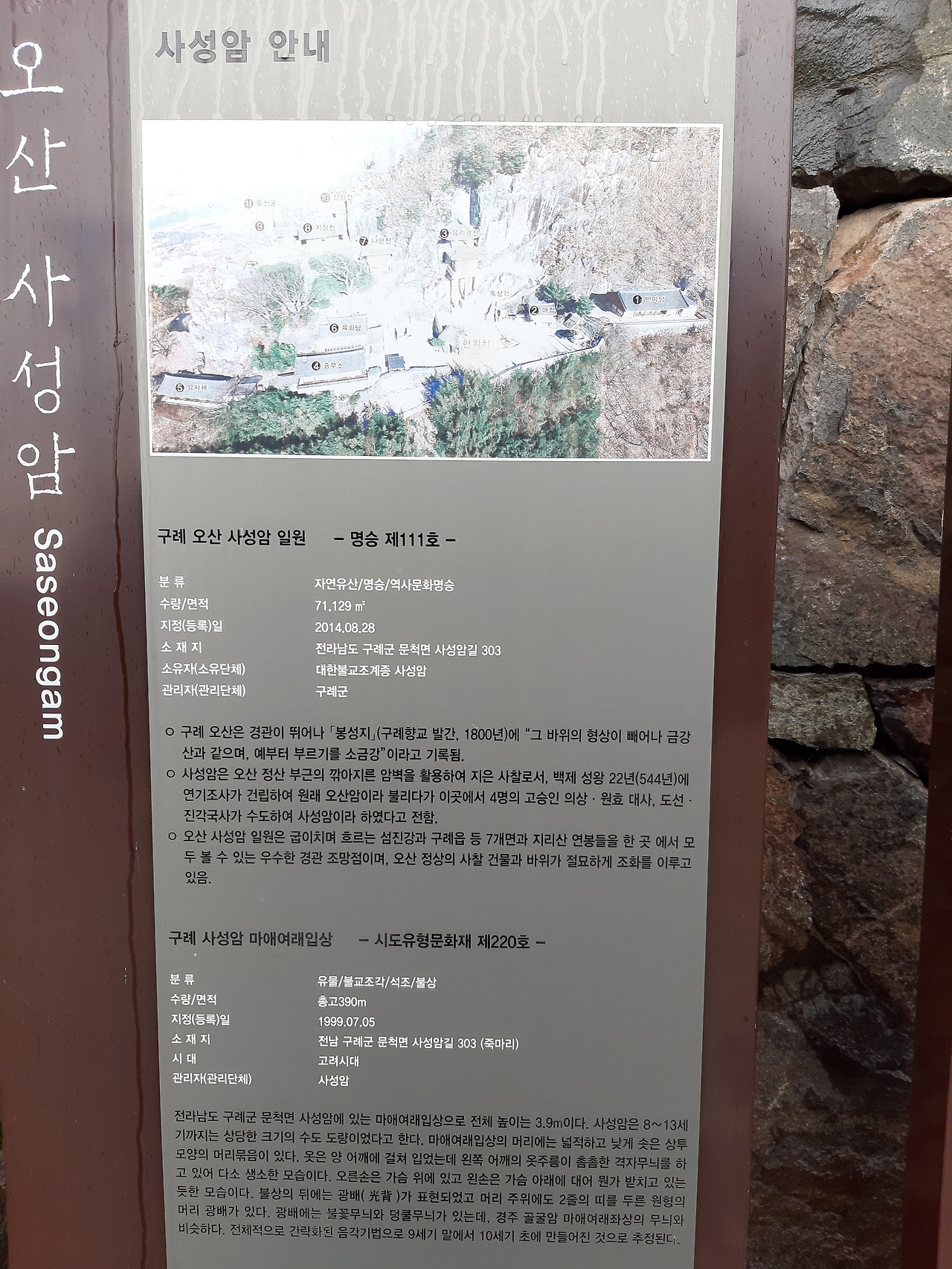 사성암을 돌아보며 소들이 이곳까지 어찌 왔을까 하는 생각을 떨칠 수가 없었다. 신기한 건 소들이 오르면서 숨이 차기도 했을 거고, 얼마든지 풀의 유혹에라도 빠져 멈추거나 옆길 어느 곳이라도 갈 수 있는 상황이었는데 곧바로 유리광전 아래까지 가서야 멈추었다는 것이다. 유리광전에 계신 약사여래 부처님께 건강을 보호해달라는 기도라도라도 한 것일까?