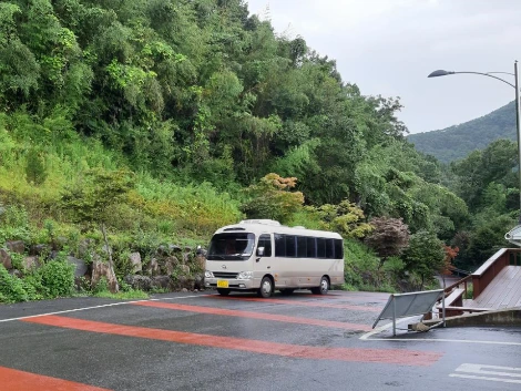 30분 간격으로 운행하고 있는 셔틀버스가 관광을 마치고 하산하려는 분들을 태우러 올라오는 모습입니다.