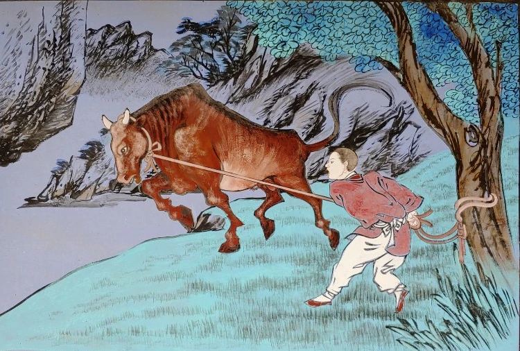 그러면 소를 상징으로 하여 인간 본성을 찾아가는 과정을 그린 십우도를 살펴보자.