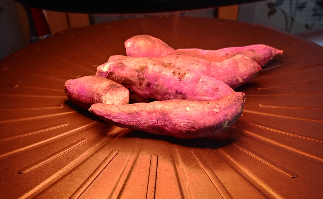 저녁시간이 되어 고구마를 굽고 문어를 삶았다. 집안에 구수한 고구마 익어가는 냄새가 마냥 마음 따뜻하게 한다. 문어도 시장에서 사 먹던 맛하곤 다르다. 돌문어라 불리는 놈들은 질기다는 생각에 잘 안 먹고 문어가 먹고 싶으면 피문어를 사서 먹었었는데 그 생각으로 크게 기대는 안 하고 삶은 것이 아주 연하고 맛있어서 먹다 보니 두 마리를 남편과 거의 다 먹었다. 식탁 한쪽에서 맛있게 익어 자꾸만 눈길을 끄는 군고구마는 후식으로 먹었다. 달달한 맛이 배가 부른데도 자꾸만 먹게 되어 6개 구운 것 중 남편에게 1개를 먹기 좋게 껍질을 벗겨 주고 나는 작은것 4개를 먹어버렸다.나머지 1개는 더 이상 먹을 수 없어 남겨두었다가 다음날 아침에 먹었다. 점심에 먹은 고구마튀김과 저녁에 먹은 군고구마의 양은 하루에 먹은 양 중 아마도 가장 많은 양일 것이다.