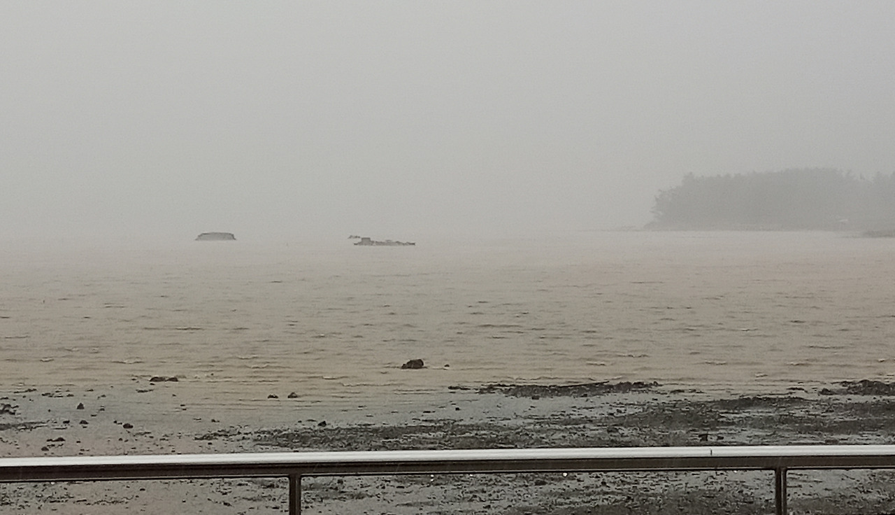 어제 오후부터 안전문자를 12통 받았다. 많은 비가 올 것이니 안전을 살피고 저지대 사람들은 우선 대피하라는 문자부터 도로가 유실되어 통제되는 곳이 있으니 외출을 삼가고 부득이하다면 대중교통을 이용해 달라는 문자였다. 안전불감증으로 가끔씩 뭇매를 맞는 행정관서에서 아마도 밤새 어떤 상황에 피해가 발생할 것을 줄이기 위해 밤새워 대기를 하고 있는 모습이 보이는 것 같다.어스름에 보이는 바닷물이 황토색이 되었다. 얼마나 많은 빗물이 지구를 씻어 바다로 버렸으면 저 넓은 바다가 황토색이 되었을까?