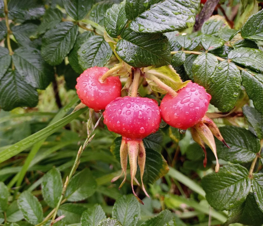 빗물에 흠뻑 젖은 해당화 열매는 부끄러움 많은 처녀의 자태인 양 얼굴을 붉히고 고개를 숙였다.