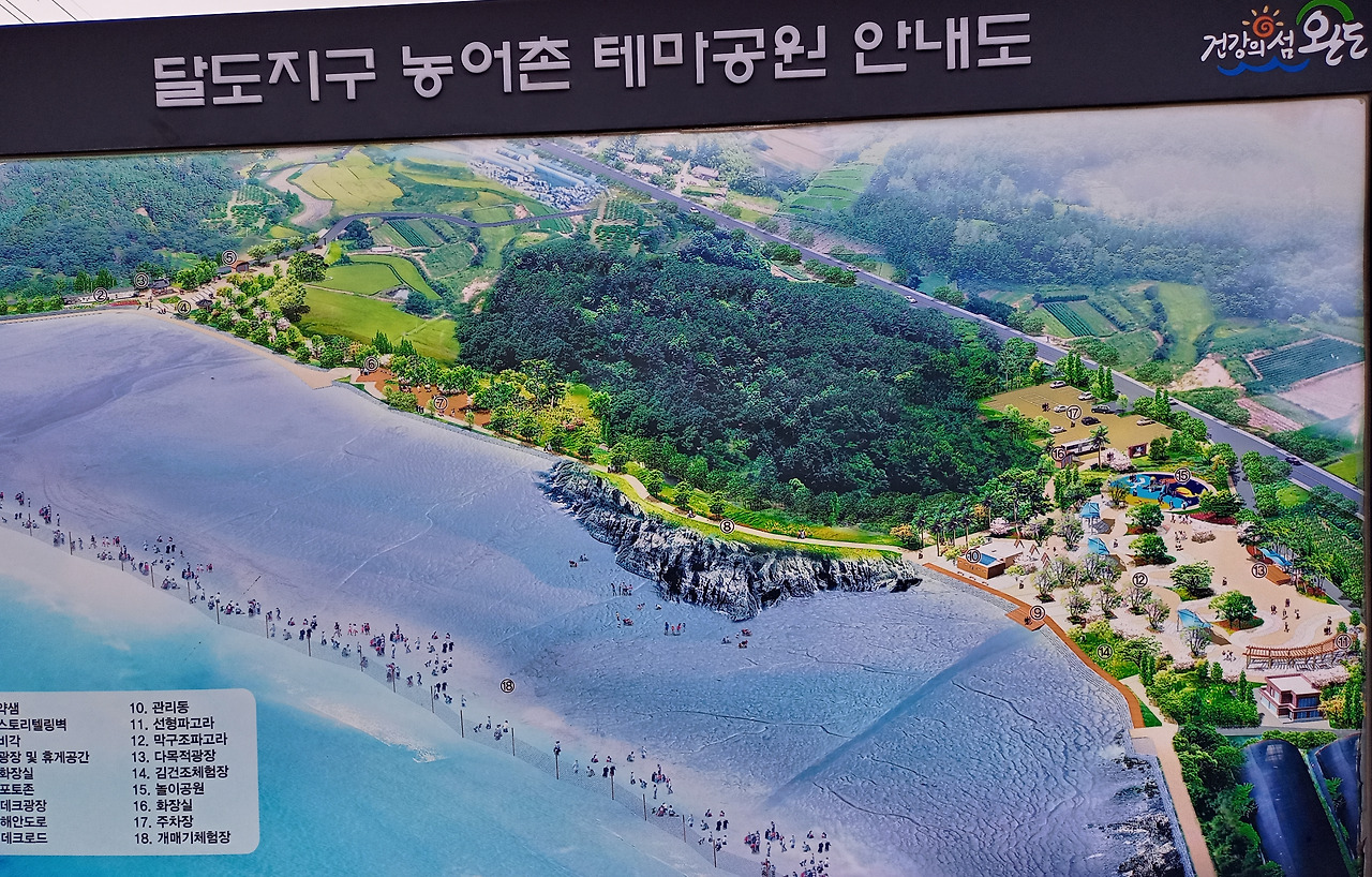 전남 완도군은 이 약샘 주변 1만 8600㎡를 2013년 말경 농어촌 테마공원으로 개발하였다. 공원의 이름은 '달도 테마공원'이다. 이곳에서 해변데크를 통해 약샘으로 갈 수가 있고, 가는 길에는 약샘에 얽힌 이야기를 담은 스토리텔링 벽화와 역사 공간을 둘러볼 수 있으며, 약샘 주변으로 자라고 있는 갯고동을 줍는 즐거움도 느낄 수 있다. 미리 예약하면 개매기 체험을 할 수 있었는데, (개매기란 썰물 때 미리 그물로 막아놓아 빠져나가지 못한 물고기를 맨손으로 잡는 옛날 방식의 어로행위이다.) 지금은 코로나 때문에 기획하지 못하는 상태이지만 코로나 이전에는 인기 있는 체험행사였다고 한다. 코로나를 극복하고 여행이 자유로워 지는날 온 가족이 참여하여도 좋을 행사이다.