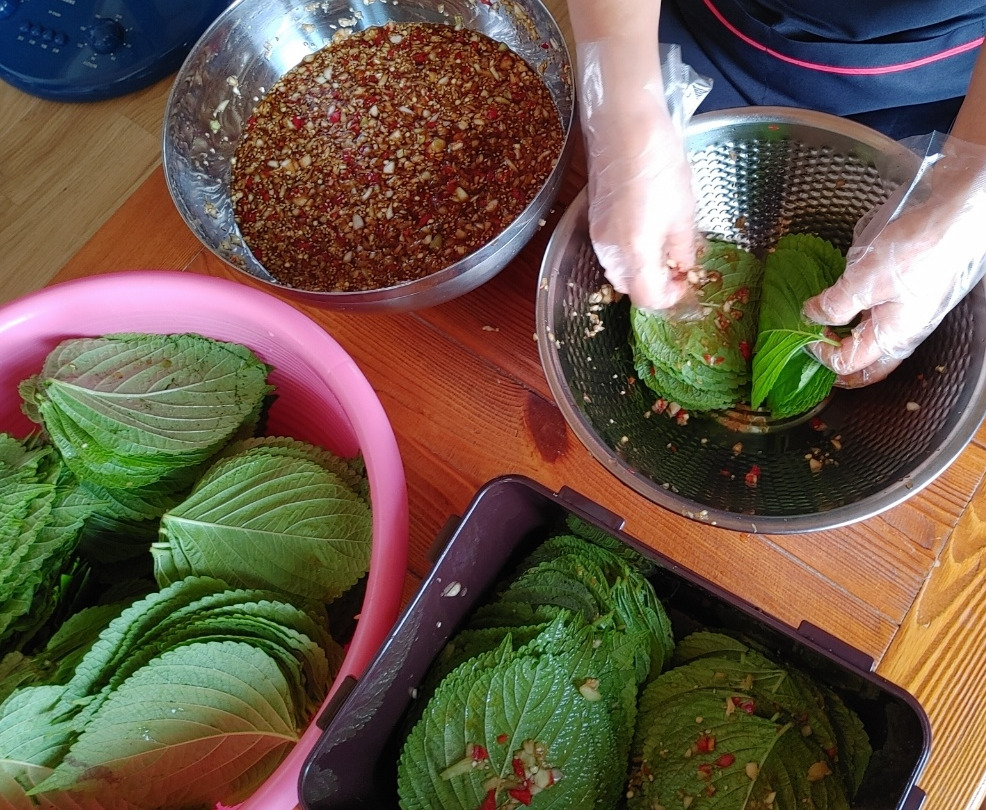 깻잎에는 로즈마린산이 다량 들어있다. 로즈마린산이 뇌세포의 기능을 활성화하여 치매환자의 증상을 개선시키는데 도움을 준다. 로즈마린산은 허브식물이 갖고 있는 성분으로 깻잎에 특히 많이 들어있다고 한다. 깻잎은 생선회와도 궁합이 좋다. 깻잎 특유의 향을 내는 성분인 페릴 케톤이 생선이나 고기의 비린 맛을 없애주고 천연 방부제 역할을 해서 식중독 예방에 도움이 된다.