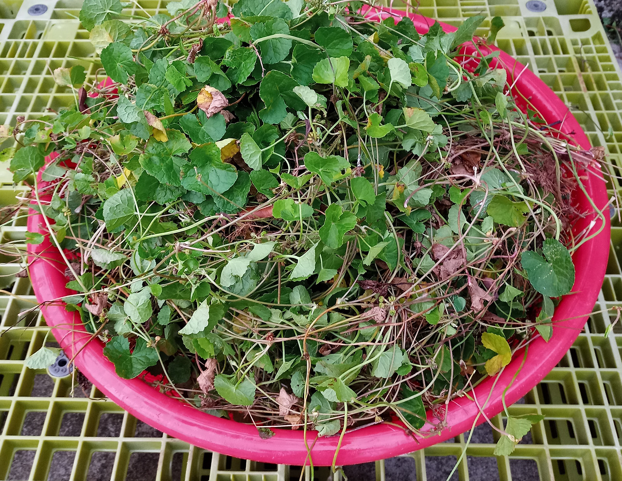 모기에 쫒겨 막따온 병풀과 잡풀을 골라내고 진짜 병풀만 모은것