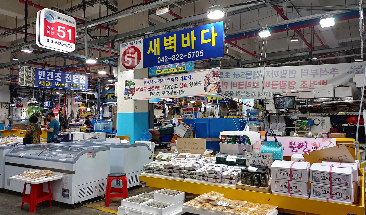 제 가게 새벽 바다는 대전 노은동에 위치한 도매시장 안에 있습니다. 공영시장이라서 대전시가 관리사업소를 운영하며 공정한 거래를 유도하고 있고요. 시설이나 안전에도 만전을 기하고 있습니다. 상인들과 소비자가 모두 만족할 수 있도록 관련된 모든 분들의 불만과 서운함등을 중재해 주고 있습니다. 그러다 보니 상인으로 종사하는 사람들은 노력하는 만큼 사업을 키울 수 있고요. 중간상인 분들은 공정한 가격에 물건을 구입하여 다시 적정한 가격에 판매를 하면서 자신들의 세계를 펼쳐가고 있지요. 또한 일반 소비자분들도 언제든지 이용이 가능하여 필요한 물품을 구매해 가시는데요. 싱싱하고 보다 저렴한 가격에 구입할 수 있어서 다들 만족해하고 계십니다.