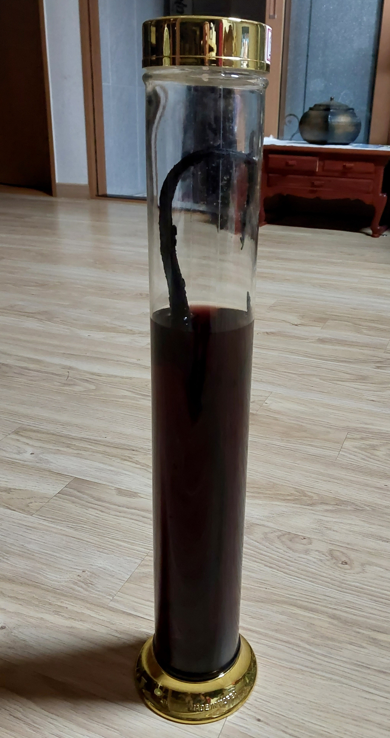 소 취하 약취 평, 6 행시로 받은 지치주 : 받은 기념으로 남편과 한번 마시고 더 이상은 아까워 이만큼 남은 것을 보관 중이다.