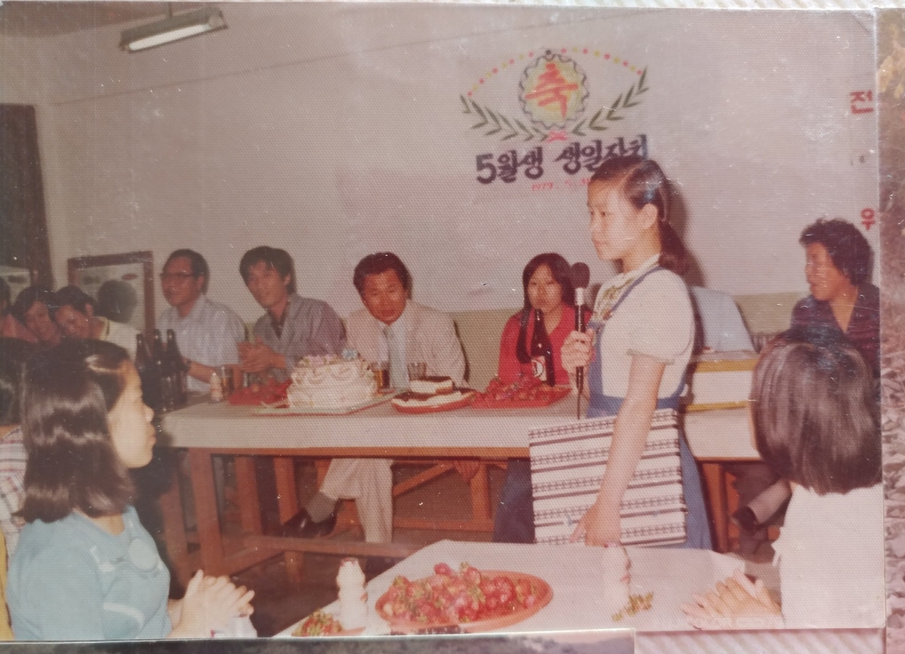 1979년 5월 생애 첫 번째 생파이며, 남으로 부터 받은, 또 많은 참석자 중에 뽑혀서 받은 생일선물을 안고 소감을 발표하고 있는 모습^^