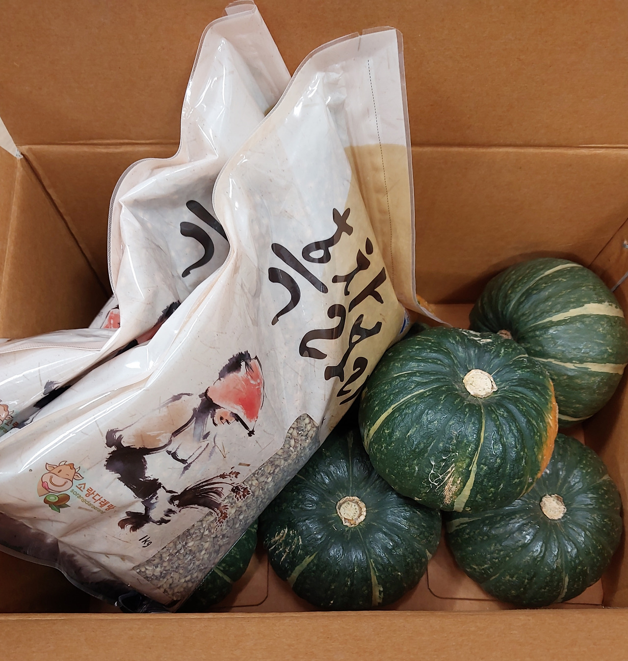 기부자는 단 두 명을 뽑는 이벤트에서 나를 뽑아 몸에 좋은 밤호박과 찰보리쌀을 보내주었다.