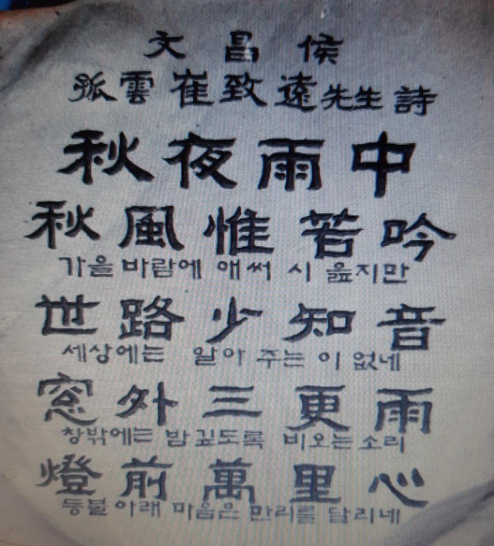 고운은 고려말에 태어나 당나라를 유학하고, 당나라에서 벼슬까지 했던 수재였다. 망국의 한을 풀어버리지 못하여 조선 초기에 정치에 뜻을 버리고 삼천리 곳곳을 유람하며 살았다. 우리나라 곳곳에 고운의 흔적이 남겨져 있는 것이 유람의 증거다. 이번에 찾은 고운의 흔적은 보령시의 한 곳, '맥도(麥島)'라고 불리는 곳으로 바위가 병풍처럼 둘러쳐져 있는 예전엔 섬이었던 곳이다. 지금은 주변이 논이다. 가까이 바다를 막은 방조제가 보이는 것으로 보아 바다를 막아 논으로 개간을 했음을 알 수 있다. 진입로 입구에 '고운 최치원 유적지’라는 팻말을 세워놓아 고운이 그곳의 풍경을 읊은 시라도 한편 만날 수 있을까 기대를 하였지만 그곳에서 지은 시는 없다. 다만 보령시에서 고운이 남긴 유명한 시 한 편을 바위에 새겨 세워 놓았다.