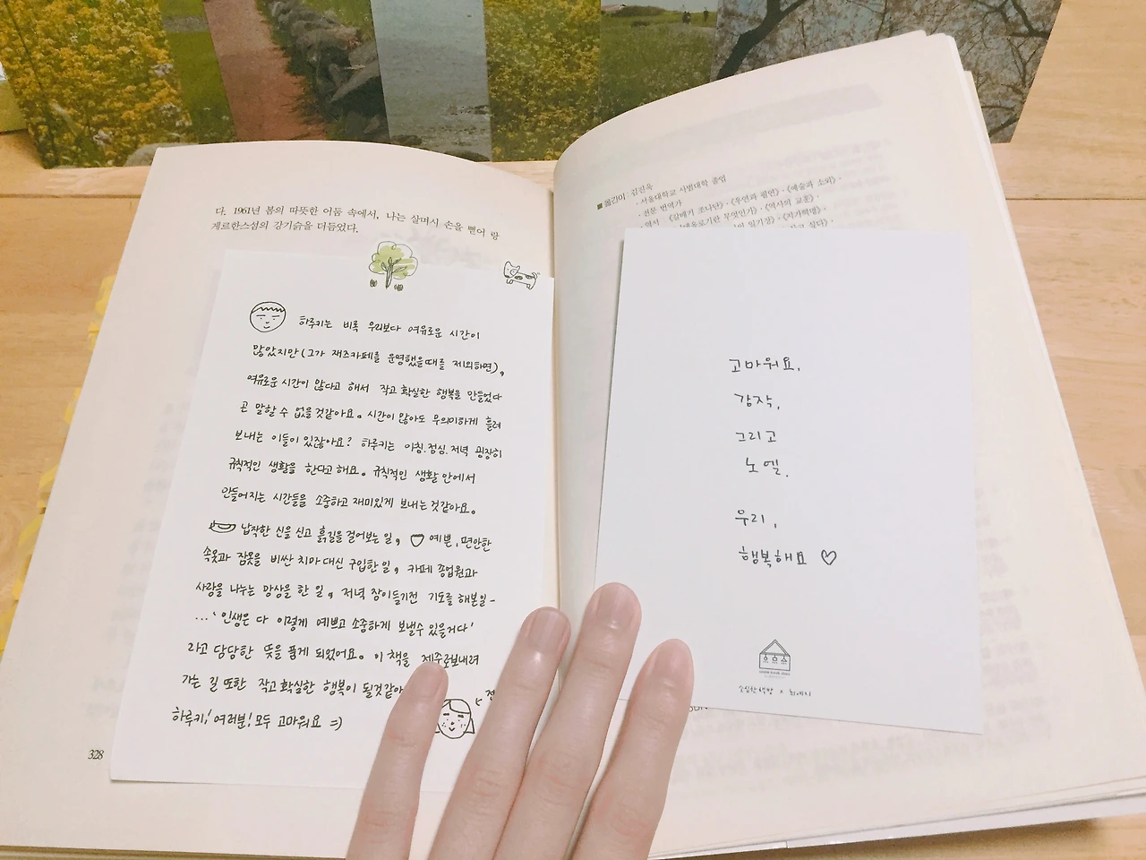 벚꽃 가지 끝에 코를 가져다 댔다. 달콤했던 분홍의 여운이 따뜻하게 올라왔다. 오늘은 우리가 사랑하는 사월의 마지막 날이다. 지난 4월 1일 아날로그북클럽은 『작지만 확실한 행복』 하루키의 에세이로 여행을 시작했다. 먼저 책 속의 나와 하루키는 '자유지은'님을 만나러 아름다운 섬, 제주로 날아갔다가, 제주의 향기를 담뿍 담고선 우릴 손꼽아 기다릴 '노엘'님에게 갔다. 그리고 마침내 어제, 책은 내게 와서- 깊은 감동을 한 아름 안겨주었다. 작지만 확실한 행복. 바로 그것. 이제부터 그 이야기를 해보려고 한다.