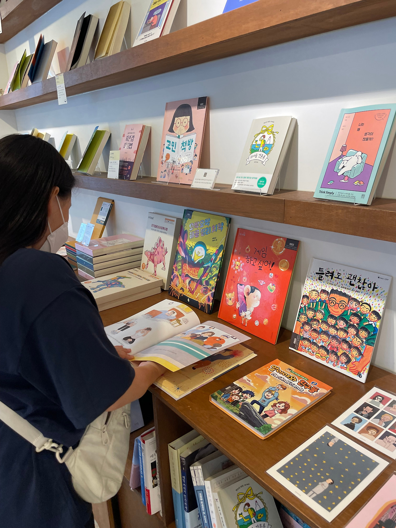 아이들은 좋아하는 음료를 주문하고, 매장에 있는 책들을 꺼내본다. 아쉽게도 초등학교 고학년 수준에 맞는 책은 많지 않다. 작은 아이는 아직도 그림책을 좋아해서 꺼내보고, 큰 아이에게는 어른이 읽는 책도 권유해본다. 마스다 미리의 오늘의 인생 같은 책은 아이가 잘 봐서 여기서 한 권 사줬다.