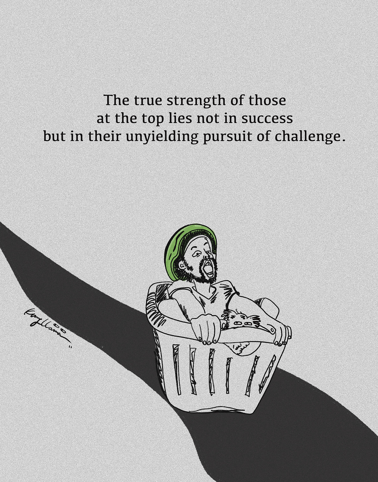 The true strength of those at the top lies not in success but in their unyielding pursuit of challenge.