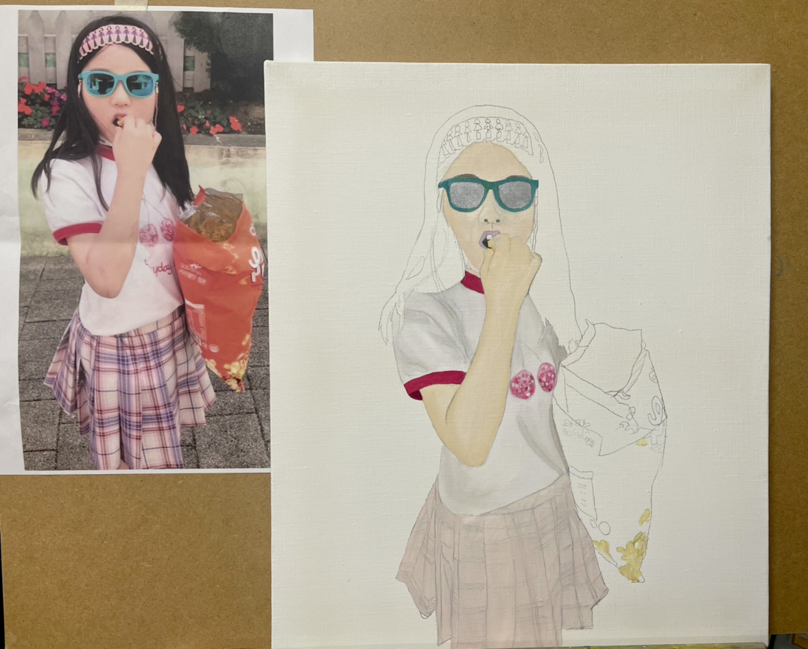 이 그림은 어디에 머물게 될까. 그 행방이 무척 궁금하다. 조카 현유를 그린 이 그림은 결국 모델의 할머니가 소장하게 되었다. 꽤 시간이 흘러 그림을 배워온 지역의 문화센터에서 단체 전시회를 열게되었고, 이 사진을 전시하게 되었다