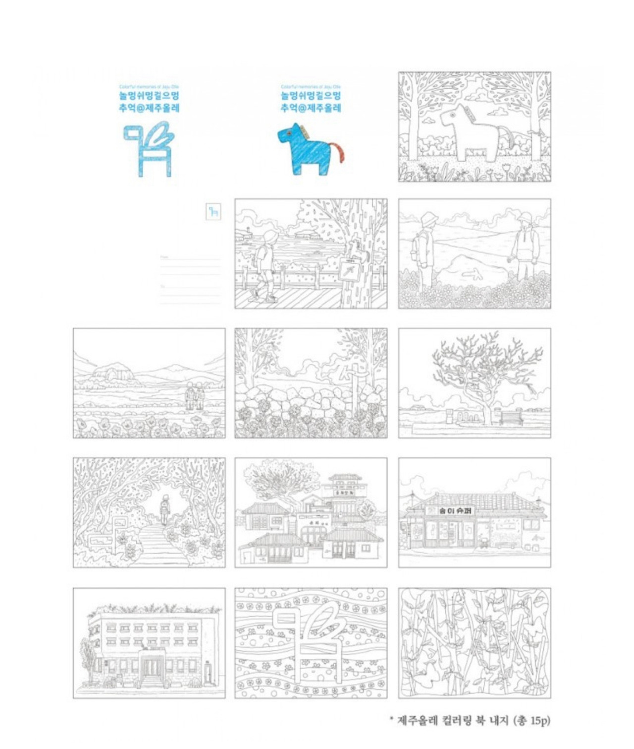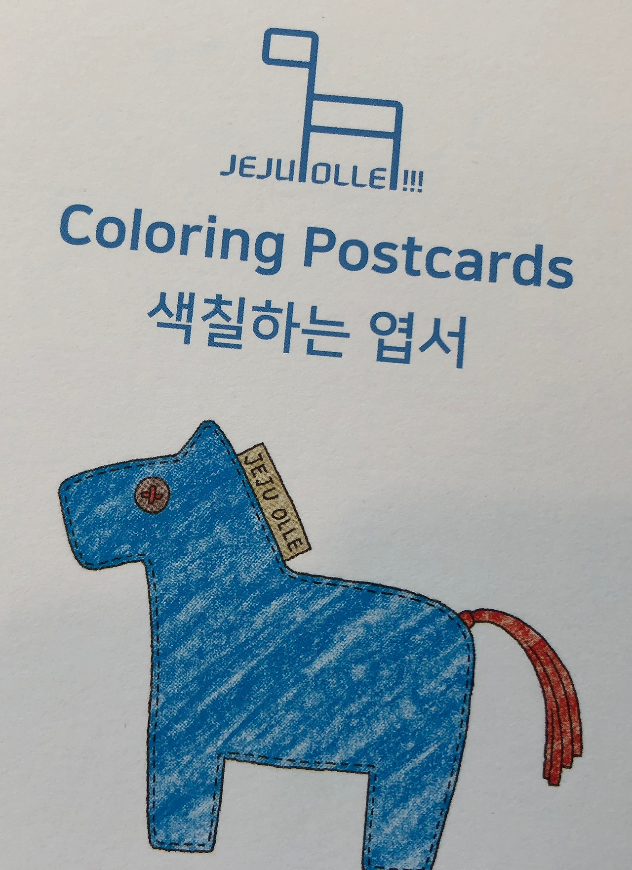 제주에 살 때, 제주올레가 만든 ‘색칠하는 엽서’에 컬러링을 해본 일이 있다. 이 엽서책은 다양한 제주의 풍광을 담고 있었다. 제주올레 여행자센터를 시작으로, 오름 풍경, 곶자왈, 제주올레의 상징인 간세까지 총 12장으로 구성되어 있었다.