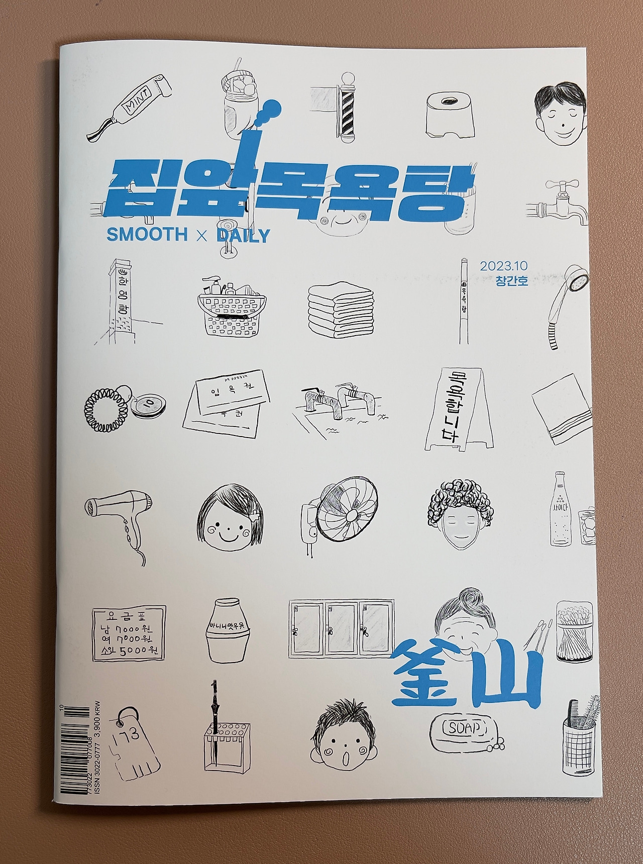 그렇다. 창간호인 10월호 집앞목욕탕 표지에는 40개에 달하는 목욕탕 소품들과 인물들이 자리했다. 월간지 발간을 앞두고 편집팀이 제안한 ‘목욕탕에서 우리가 만나곤 했던 인물들과 다양한 소품들’을 난 아이패드 프로크리에이터를 이용해 어린아이가 그린 그림 느낌으로 그렸다.