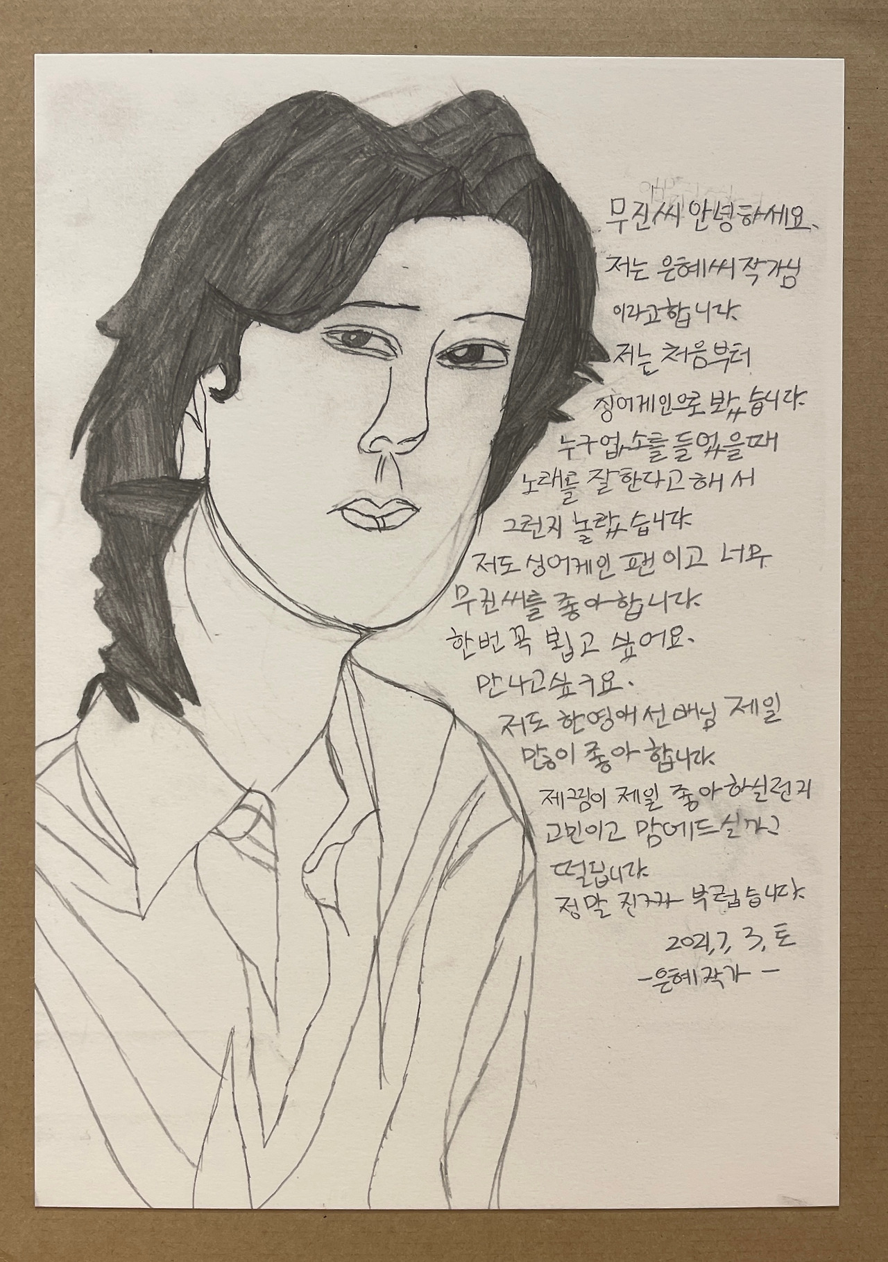 참고로 가수 이무진의 얼굴 그림에 쓴 팬레터는 사진으로 찍어 무진이 아버님을 통해 전달했음을 이 글을 통해 알려드린다. ^^