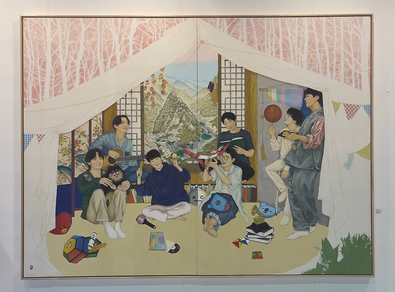 이번 울산국제아트페어가 올해로 세 번째를 맞았다. 초기엔 계속 열릴 수 있을까 남의 걱정도 많이 했는데, 그래도 3년 연속 이어지고 있으니 다행이다. 이번 전시에서 많은 사람들의 발걸음을 멈추게 한 작품은 박소은 작가의 BTS멤버들의