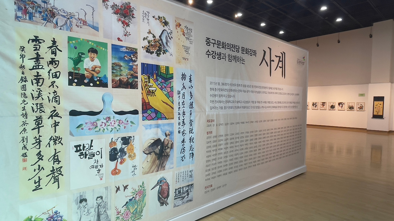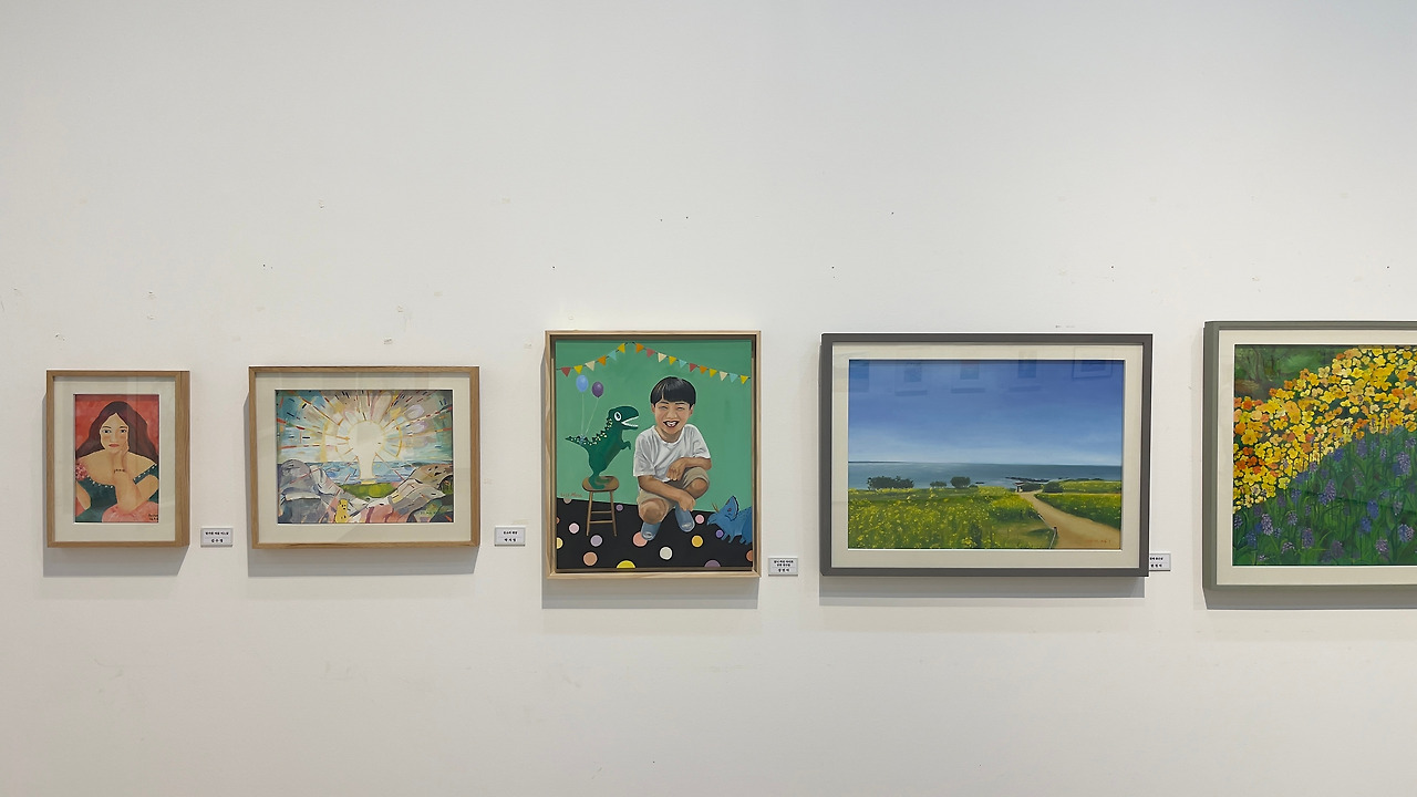 내가 그림을 배우는 문화센터의 단체전. 유화로 그린 앞니 빠진 조카 2호의 초상인데, 어쩌다 포스터에 포함되었다. 전시 후에는 녀석이 좋아하는 공룡친구들 덕분인지 자기 방에 걸어두고 싶다고 해서, 자체 제작한 어음 5,000만워(원이 아니다)를 받고 걸어주었다.