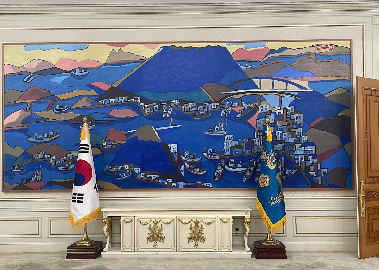 전혁림 회고전에서 본 그림들보다 큰 통영 바다를 그린 작품이 청와대에 있다는 사실을 기억하고 마침 개방된 그곳을 찾았다. 노무현 대통령의 요청으로 제작된 작품 통영항은 높이 2.8m, 폭 7m로 한산섬과 미륵섬 등을 남해안 다도해 풍경을 담고 있다.