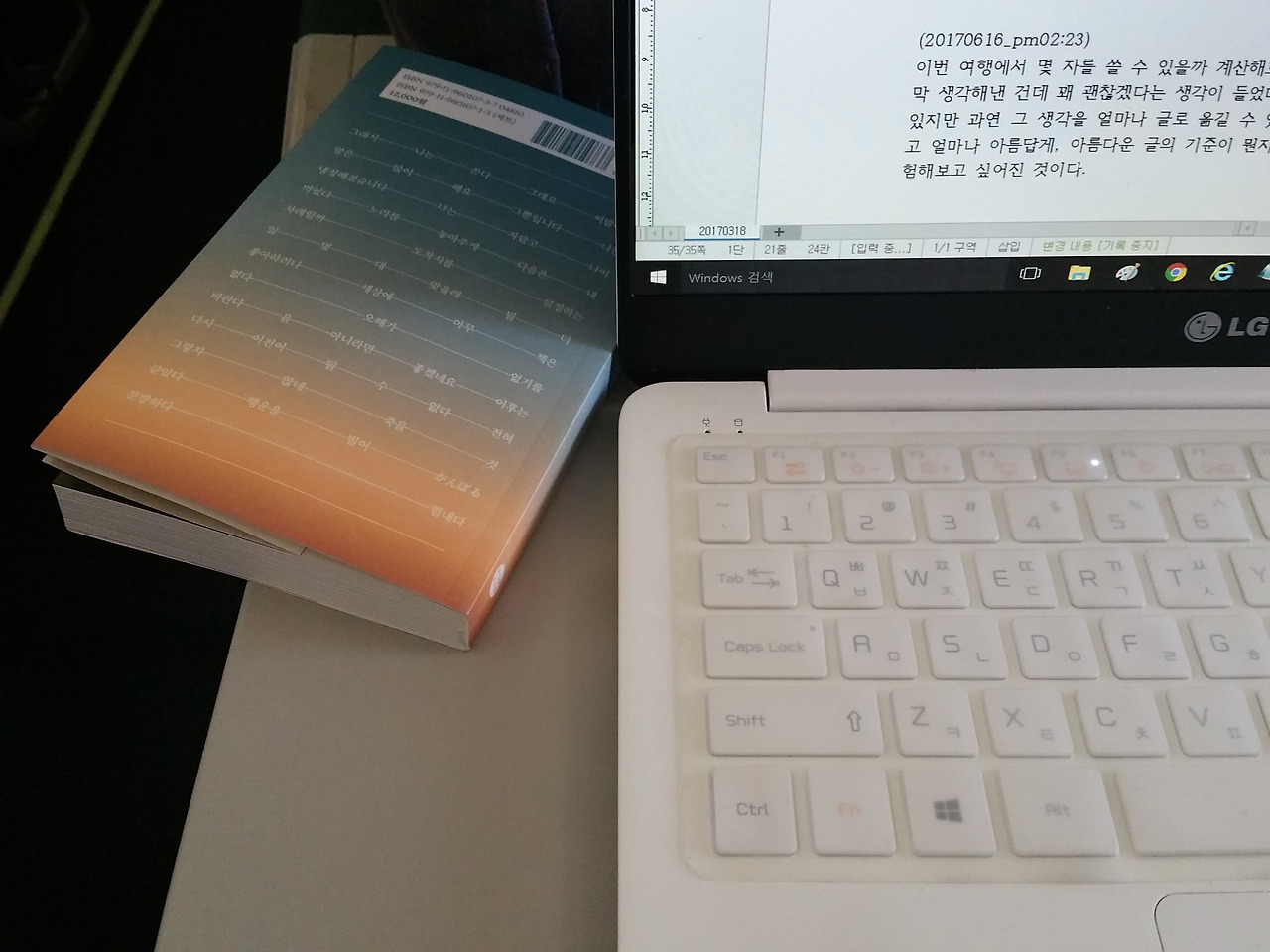 이번 여행에서 몇 자를 쓸 수 있을까 계산해보기로 했다. 이런 계획은 처음인데, 그리고 지금 막 생각해낸 건데 꽤 괜찮겠다는 생각이 들었다. 여행을 하면서 보고 듣고 생각은 많이 할 수 있지만 과연 그 생각을 얼마나 글로 옮길 수 있는지, 얼마나 정확하게 옮길 수 있는지, 그리고 얼마나 아름답게, 아름다운 글의 기준이 뭔지는 잘 모르지만 아름답게, 무엇보다 솔직하게 옮길 수 있는지 시험해보고 싶어진 것이다. 시간 단위, 분 단위로 쓰는 것이다. 무겁지만 노트북을 가지고 다닐 생각이다. 숙소에 돌아와 회상하는 글쓰기가 아니라 생각 즉시 쓰는 것이다. 아, 이러면 여행이 또 부담이 되고, 일이 되는 거 아닌가 싶어지는데, 누군가 억지로 시키는 업무, 월급을 받으려고 하는 일보다 내가 스스로 만들고 계획한 일을 더 열심히 해야 하는 것 아닌가. 그게 사는 거 아닌가! 싶기도 하다. 자유로움을 마음껏, 있는 힘껏 누리고 싶고 그것을 온전히 글로 기록하고 싶다. 내가 할 수 있고 하고 싶은 일.